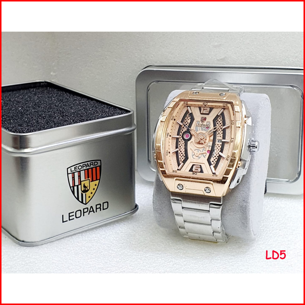 Jam Tangan Pria Leopard 8065 Original Rantai Stainless Steel