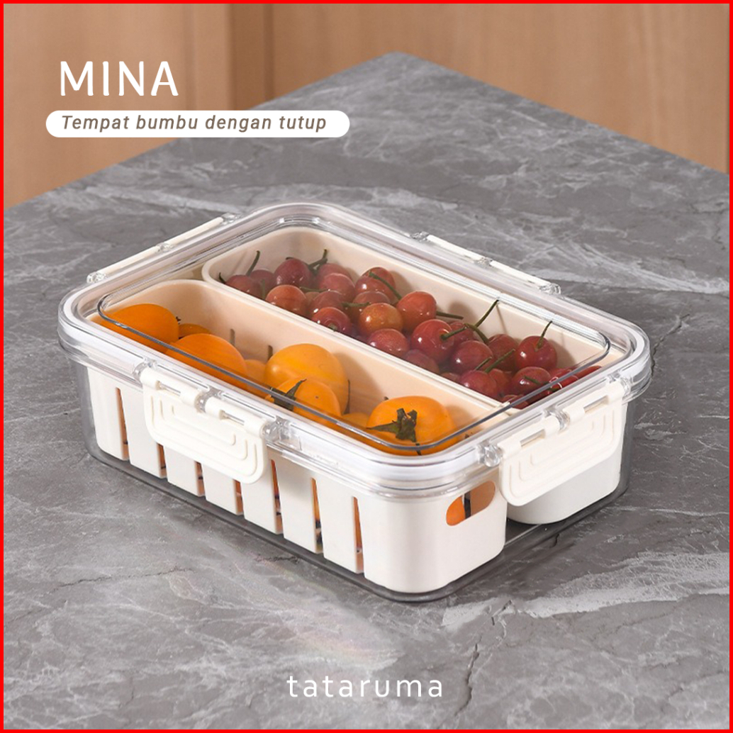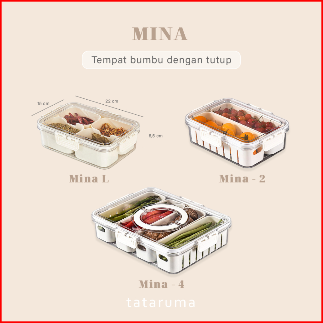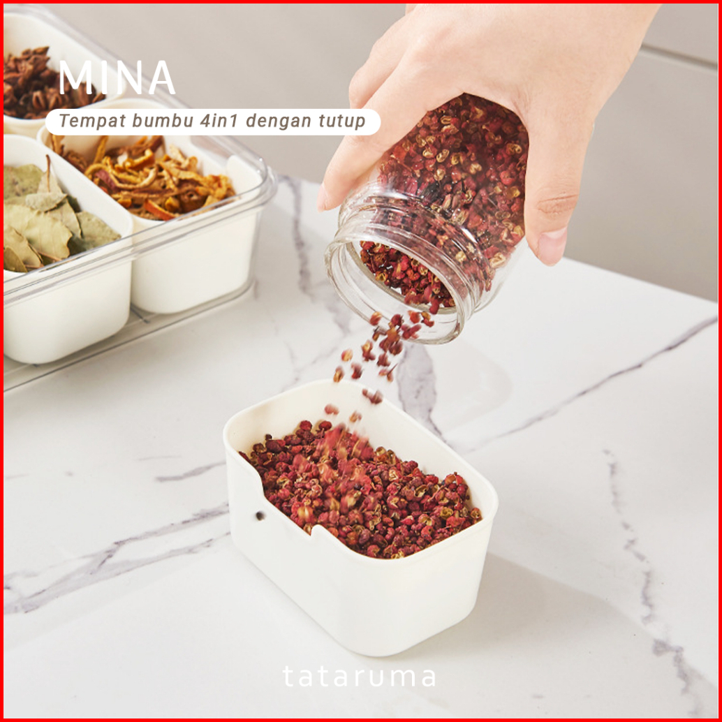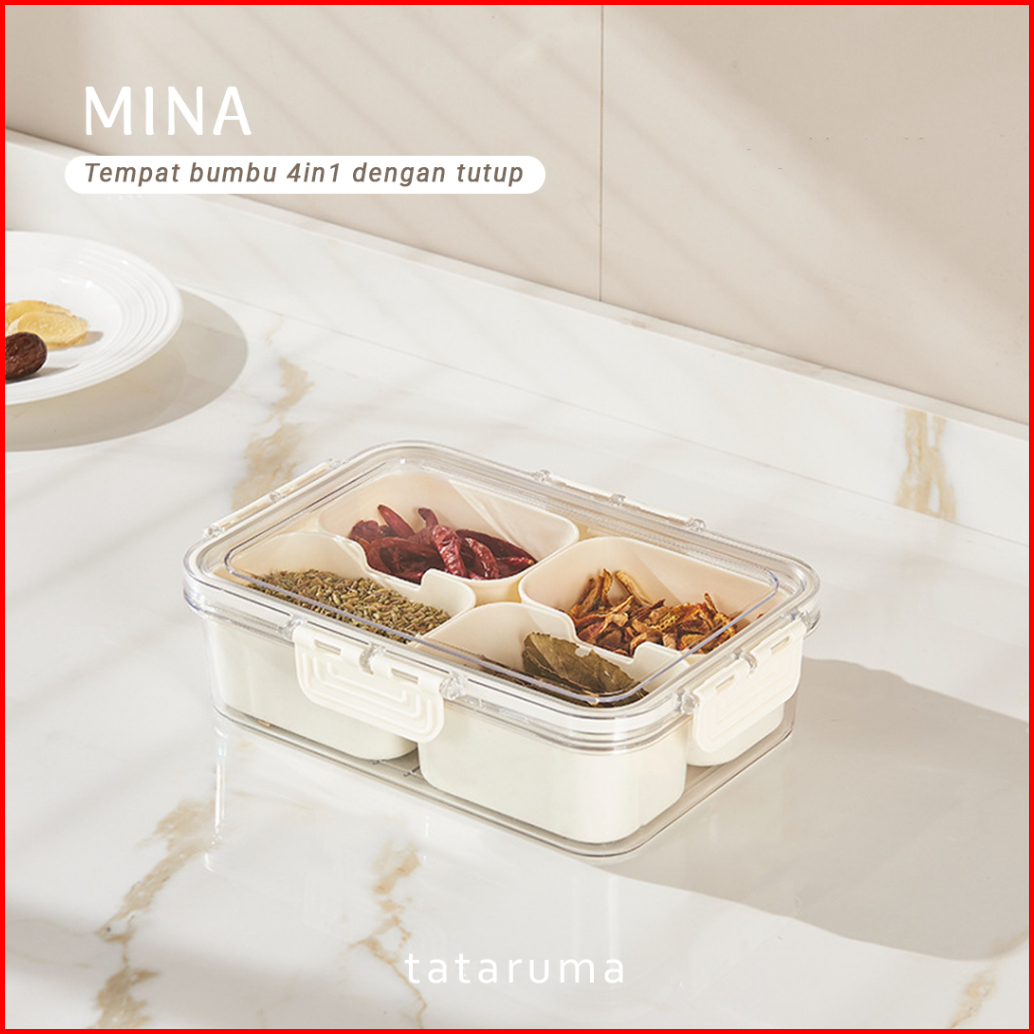 Tataruma Mina - Kotak Kontainer Tempat Penyimpanan Bumbu Dapur 4 Sekat Dengan Tutup Rempah Bawang Cabai Kulkas Fridge Ch