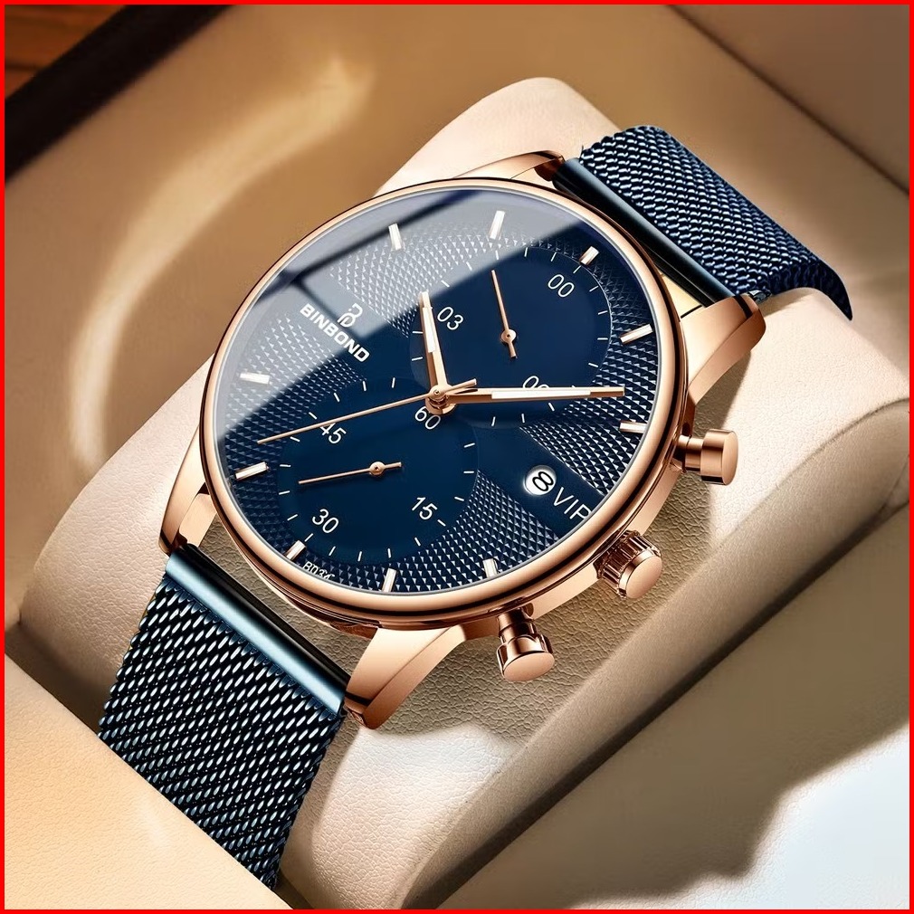 Binbond 0158 Jam Tangan Pria Elegant Tahan Air Chorono Aktif Rantai Halus