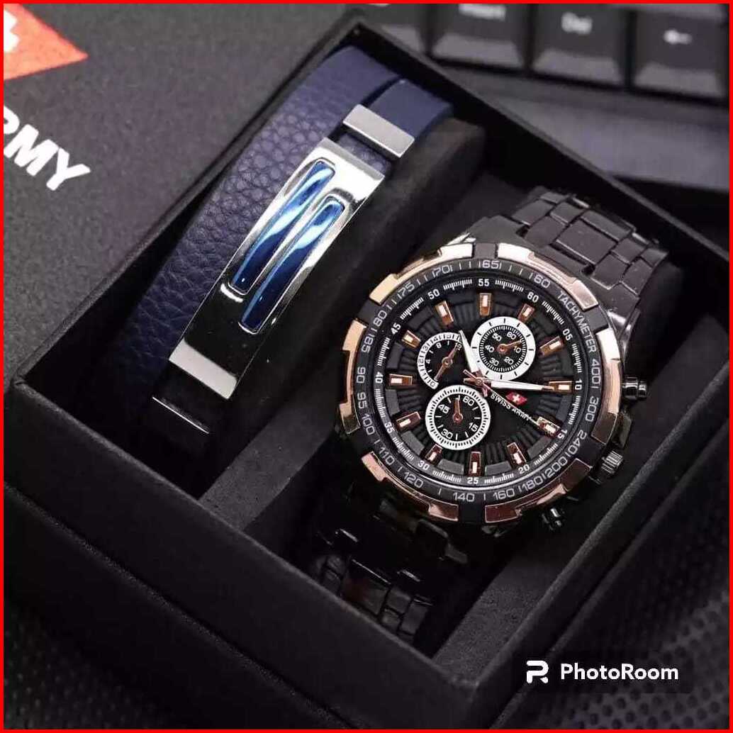 Best Seller Jam Tangan Pria Swis Rantai Stainless Chrono Variasi Free Box Analog Quartz Tahan Air