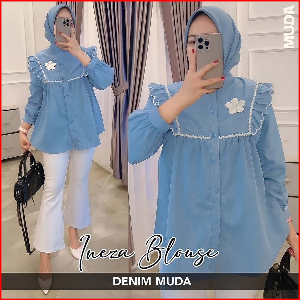 Atasan Wanita Ineza Blouse Katun Lengan Panjang
