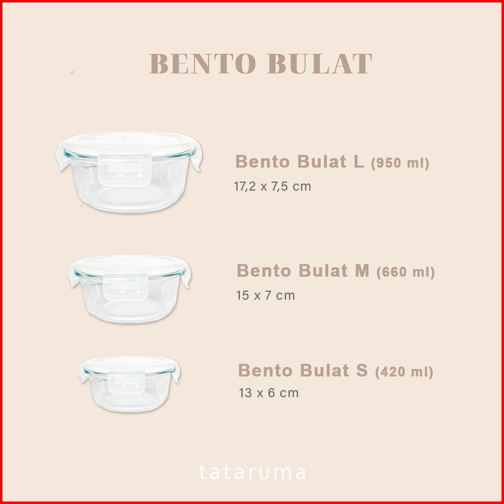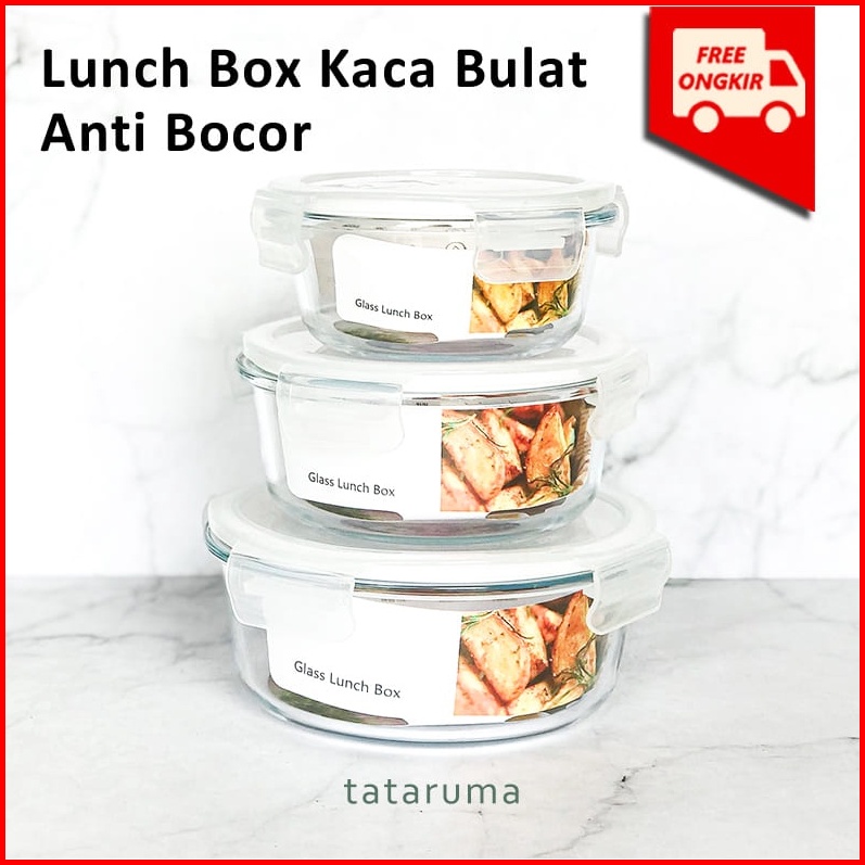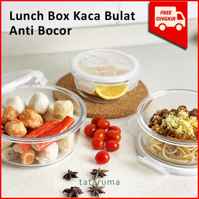 Tataruma Bento Bulat - Lunch Box Tempat Bekal Makan Kotak Penyimpanan Makanan Kaca Kedap Udara Food Container With Lid A