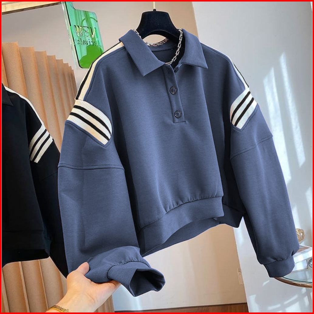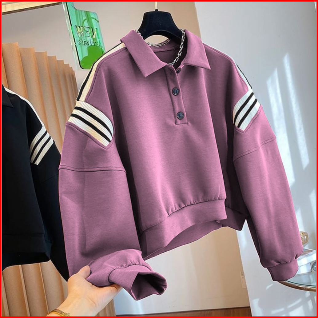 Rib Collar Sweater Kerah Wanita Oversize - Sweatshirt