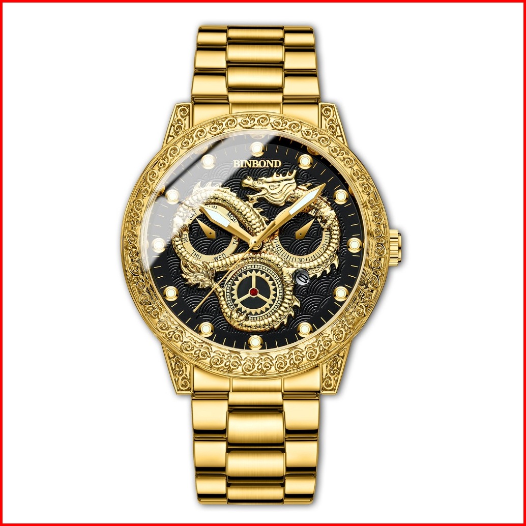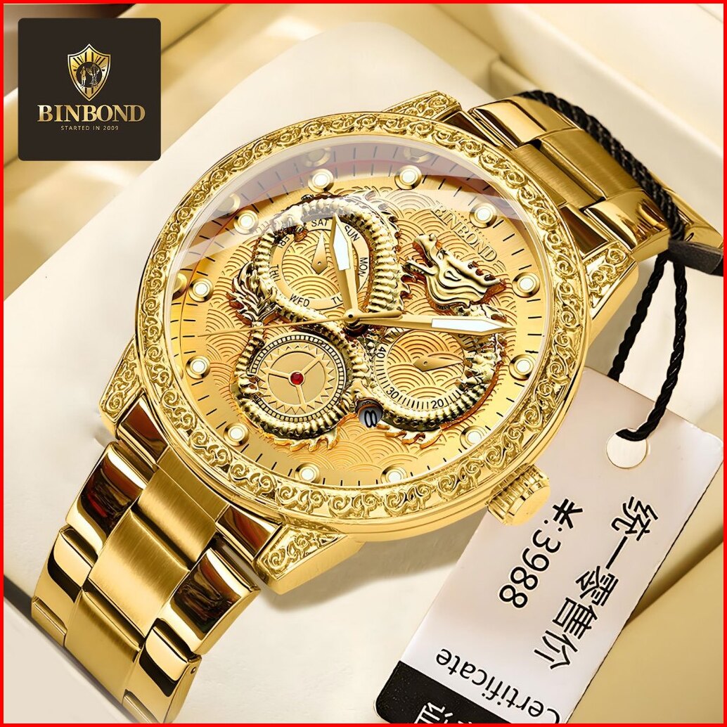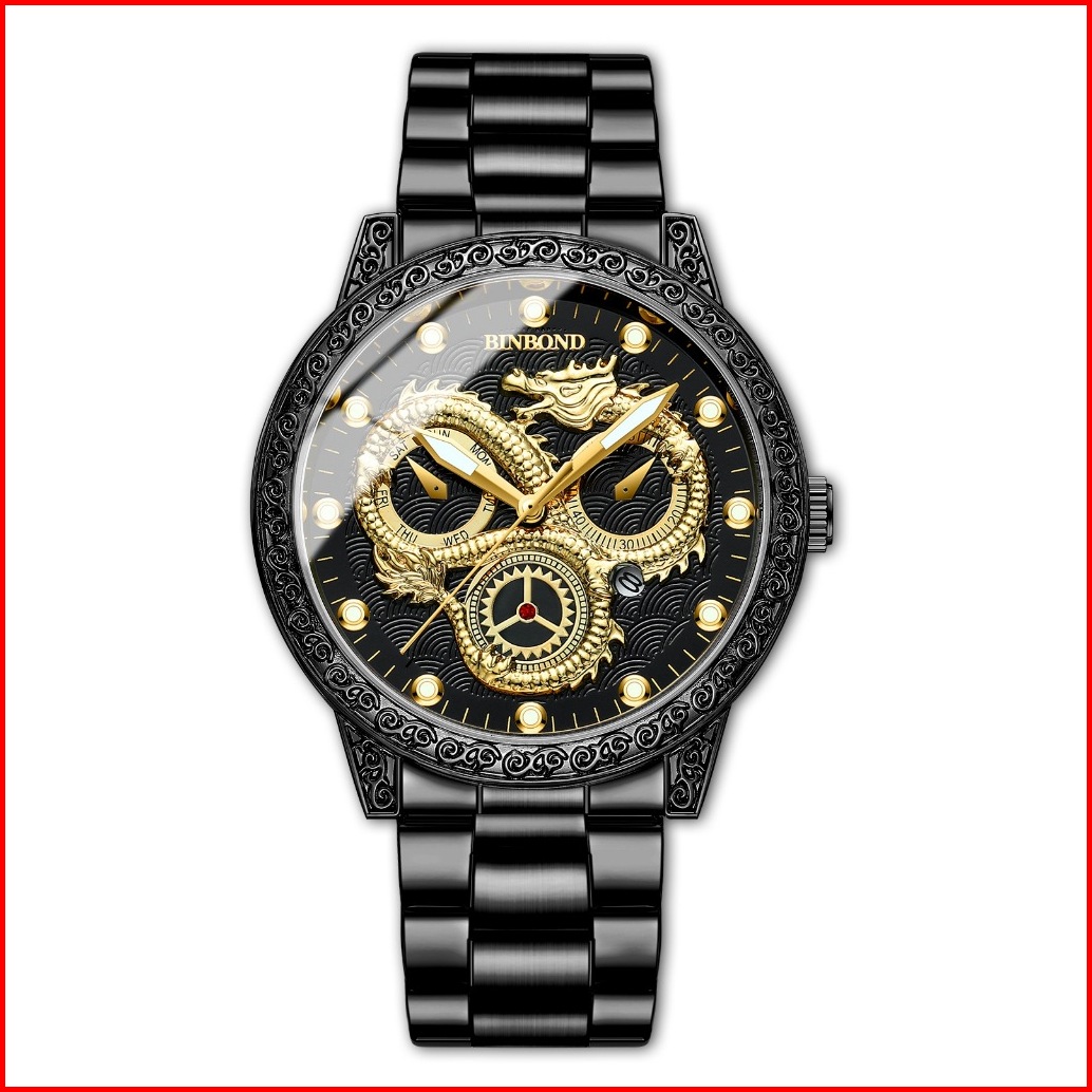 Milioner33 Bp 03 Naga Besar Arloji Asli Mewah Klasik Quartz Analog Konograf Olahraga Tahan Air - Jam Tangan Motif Naga U