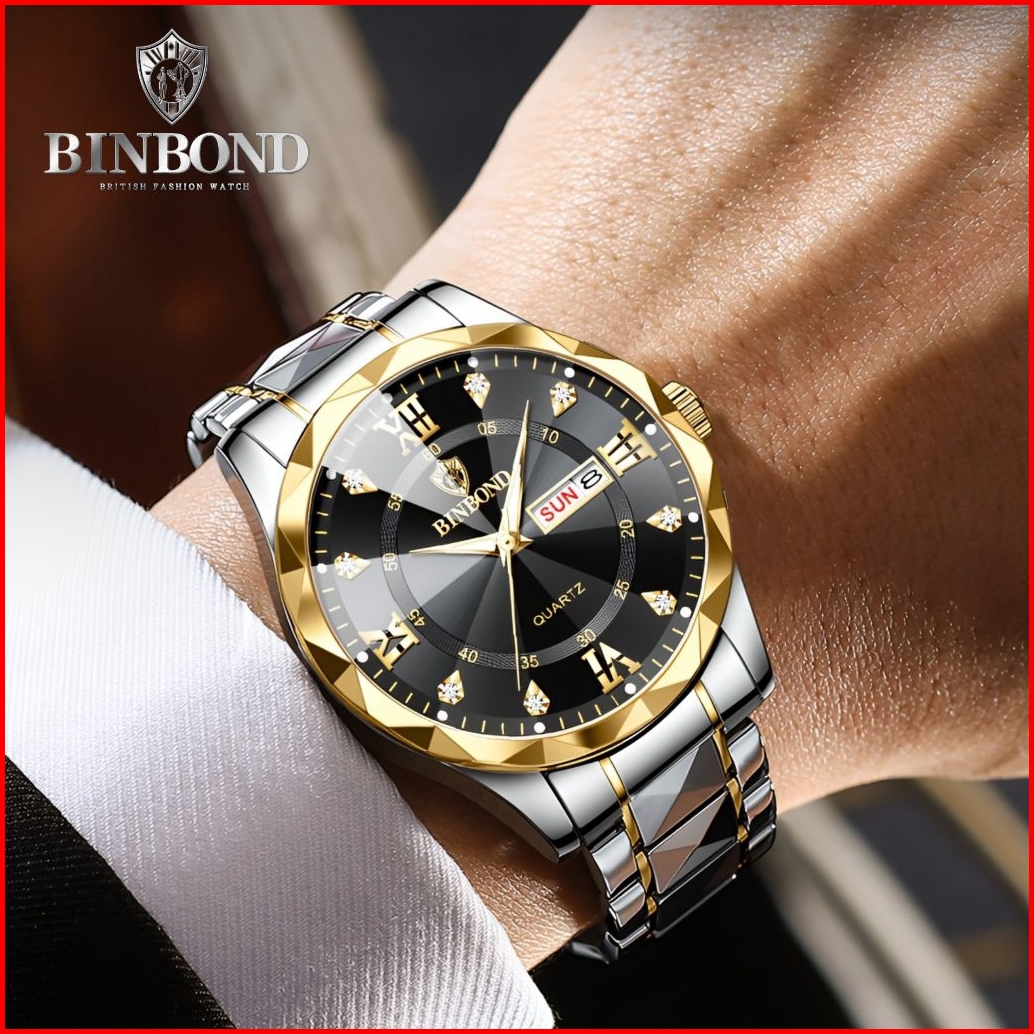Binbond Jam Tangan Pria Original 100 Stainless Steel Anti Air Kalender Mewah Kasual Watch Men