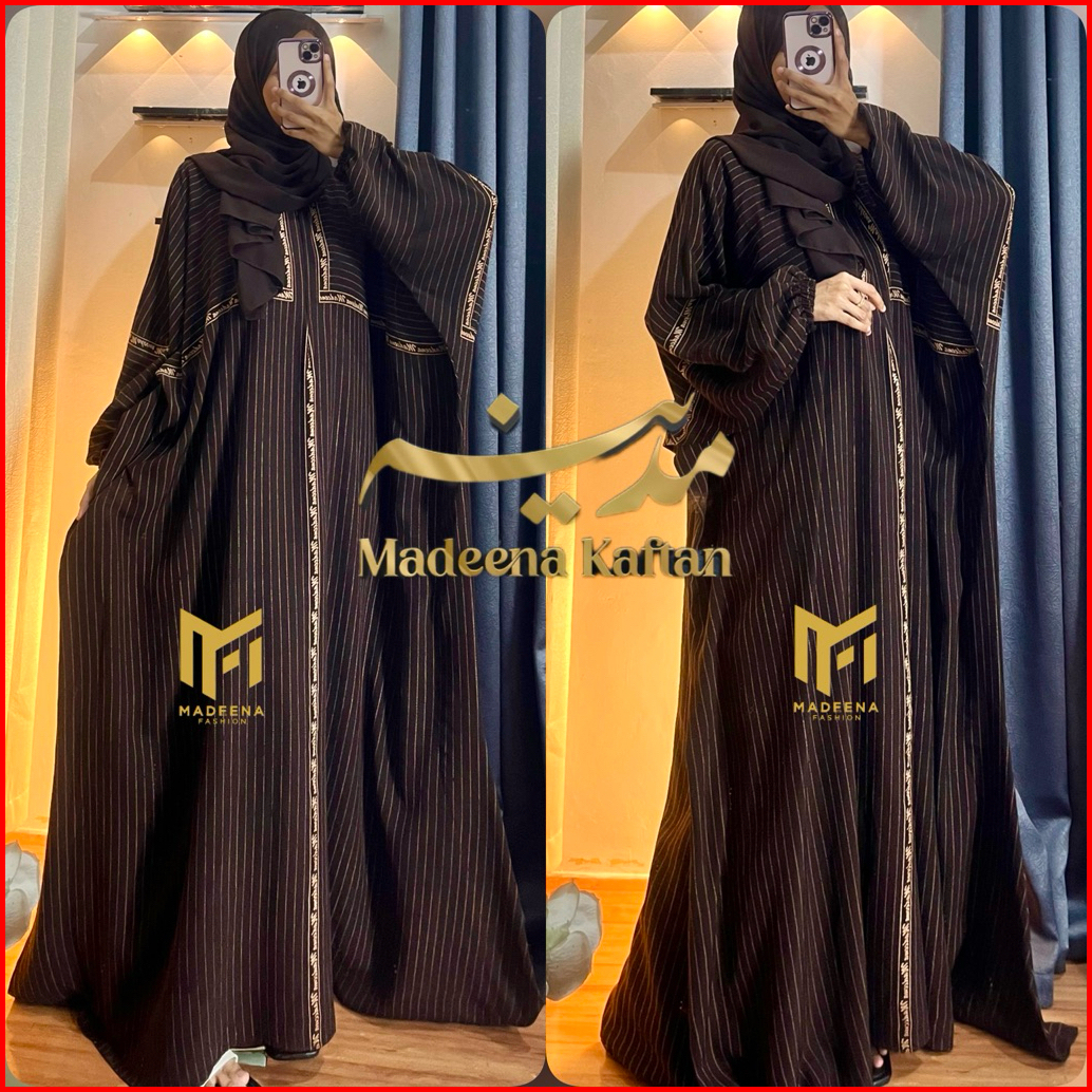 Kaftan Motif Salur Madeena Rayon Jumbo Adem Nyaman Busui Gamis Dress Panjang Wanita Remaja Dewasa