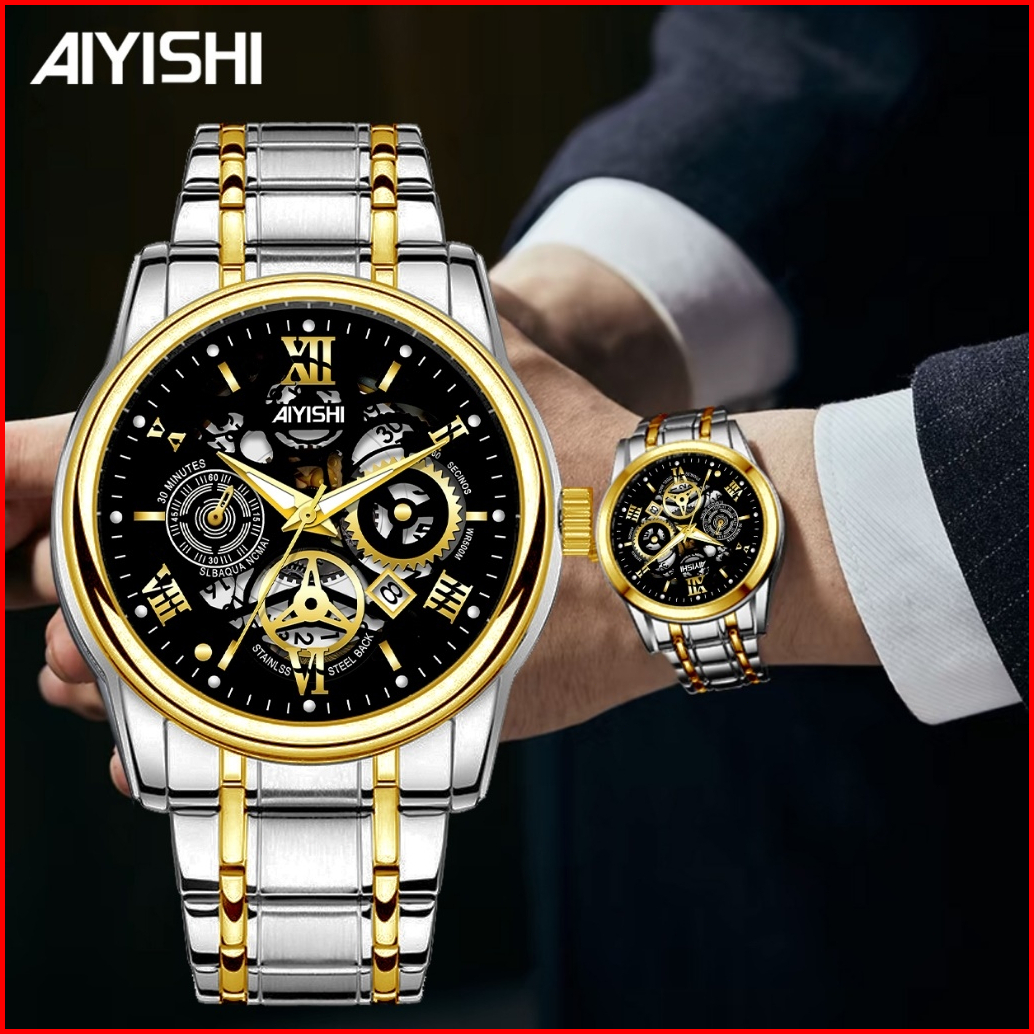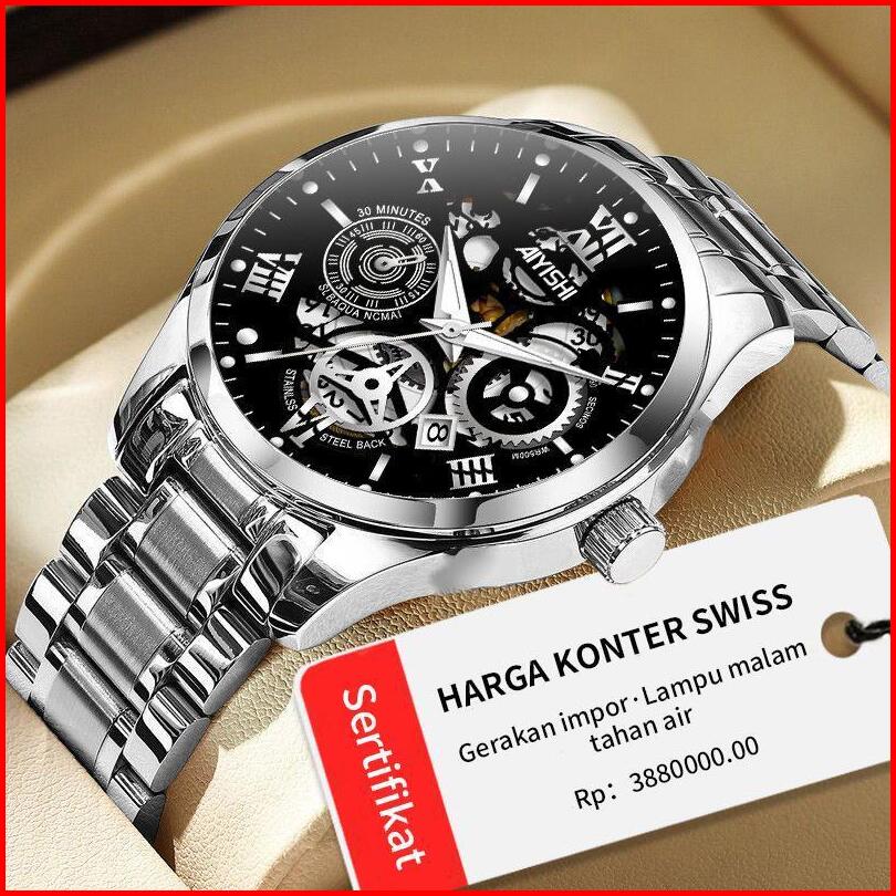 New Sale Jam Tangan Pria Original Display Kuarsa Cahaya Malam Anti Air Tali Stainless Steel Santai Mode Jam Tangan Cowok