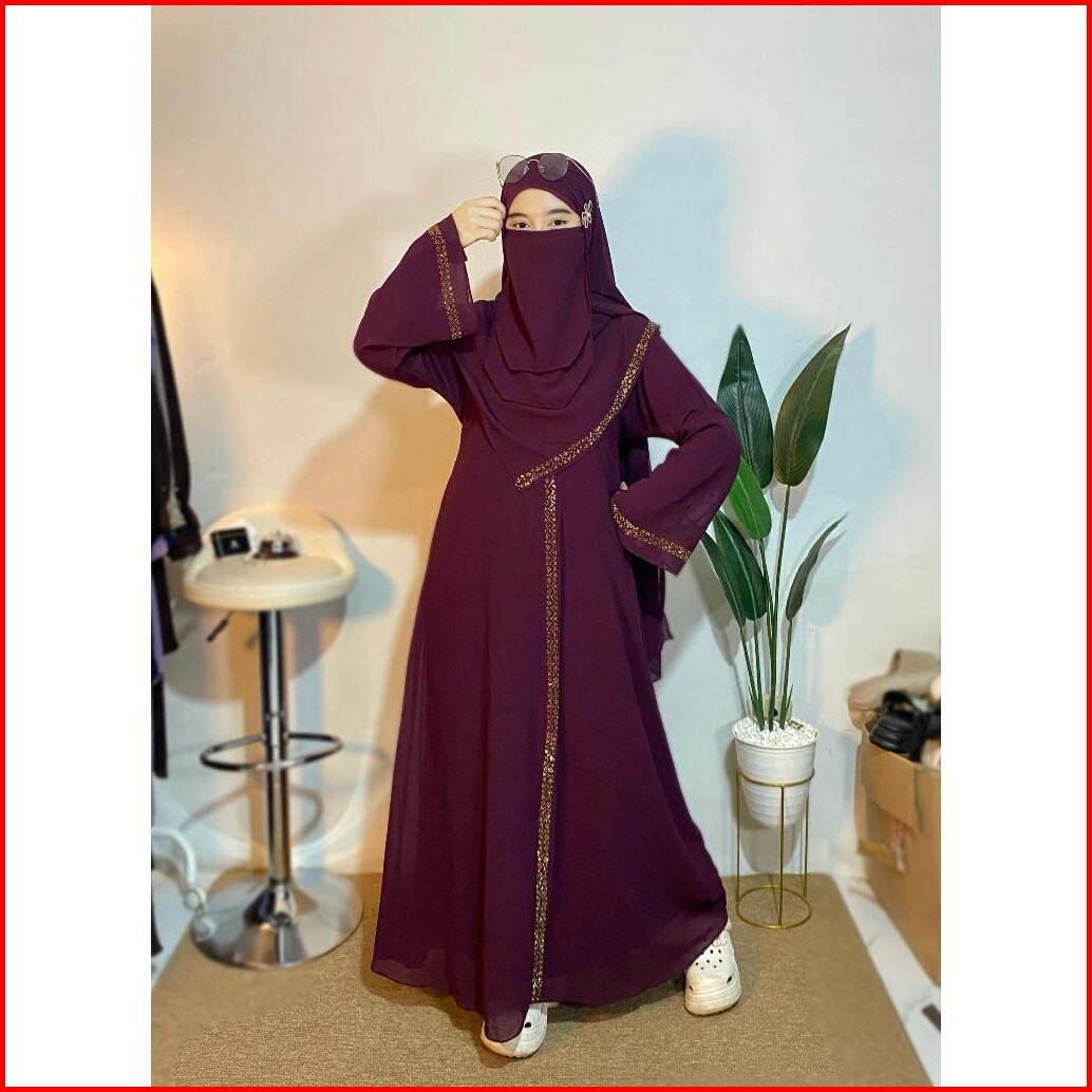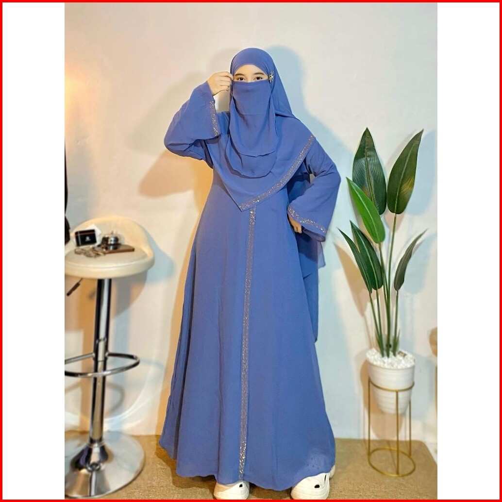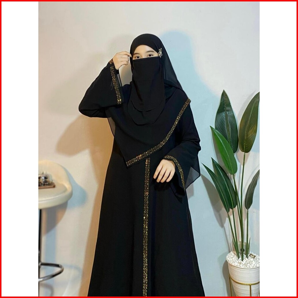Terbaru Abaya Dubai Set Hijab Pashmina Dan Cadar Syari Hiasan Hotfix Manik Bahan Ceruti Baby Doll Full Furing Baju Wanit
