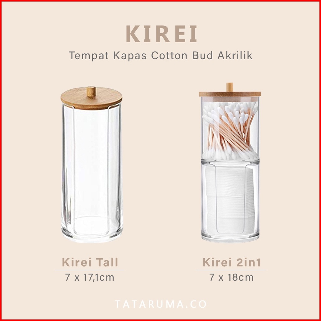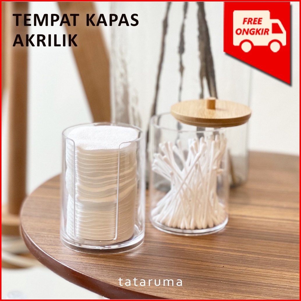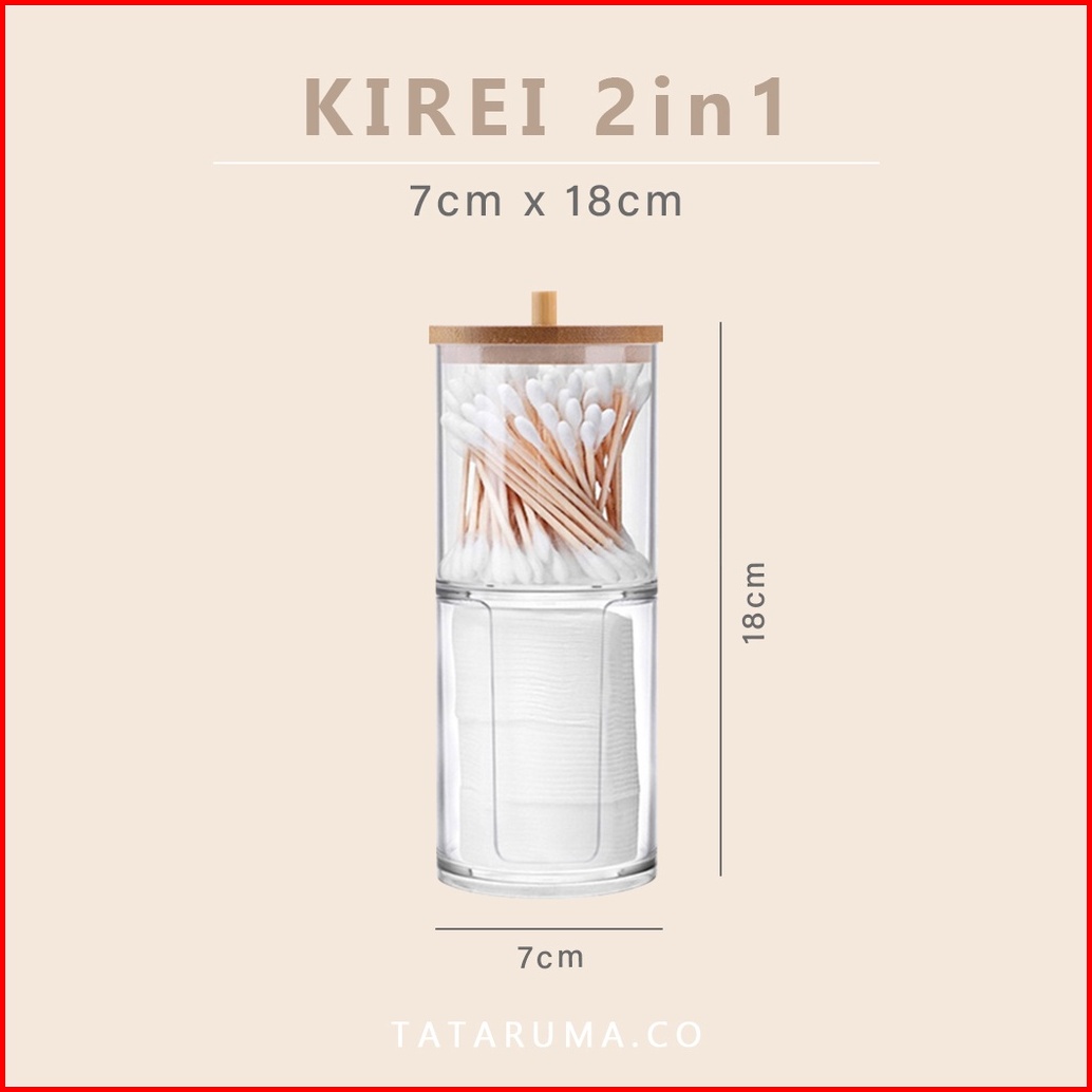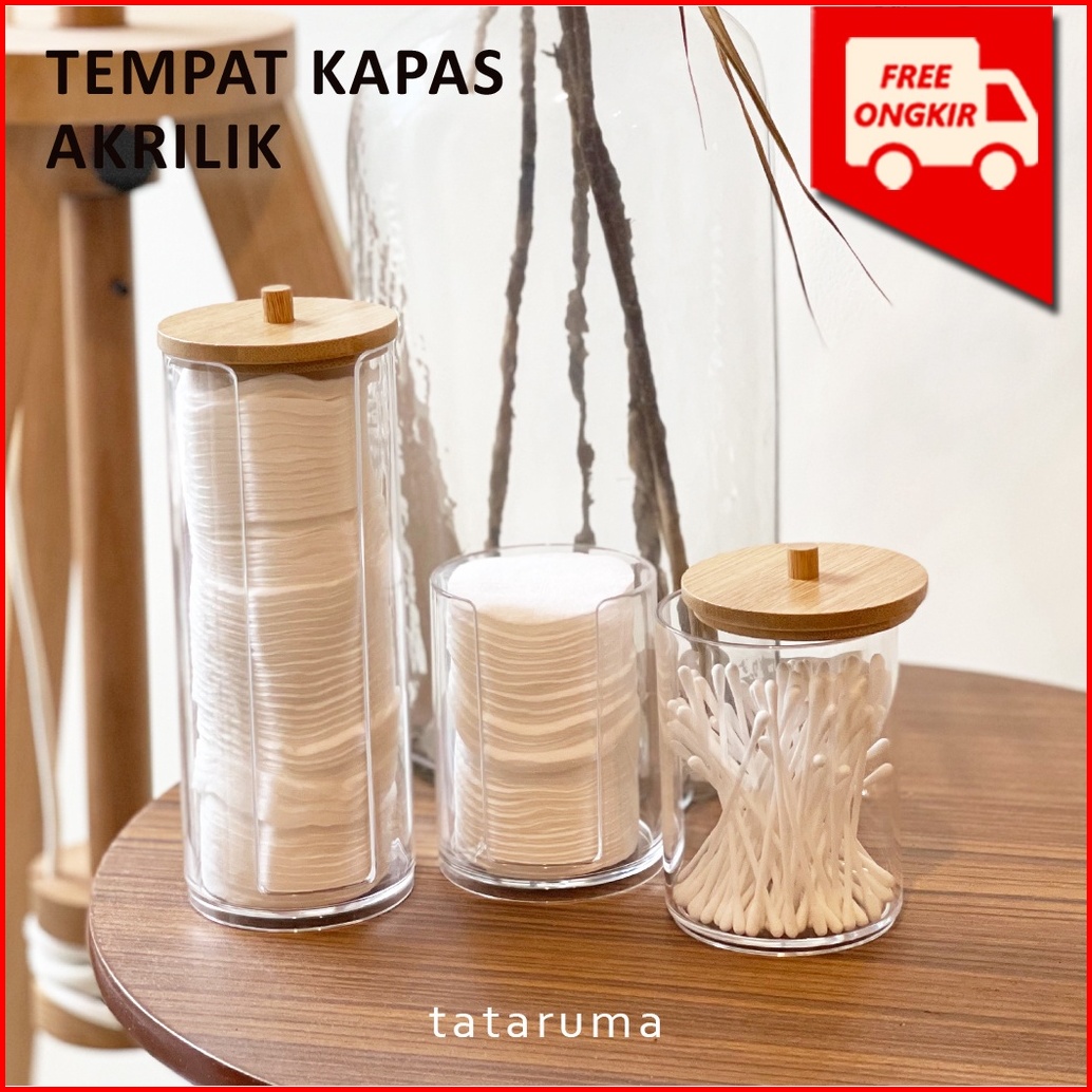 Tataruma Kirei - Tempat Kapas Cotton Bud Akrilik Transparan Bening Clear Tutup Bambu Organizer Kotak Penyimpanan Kapas A