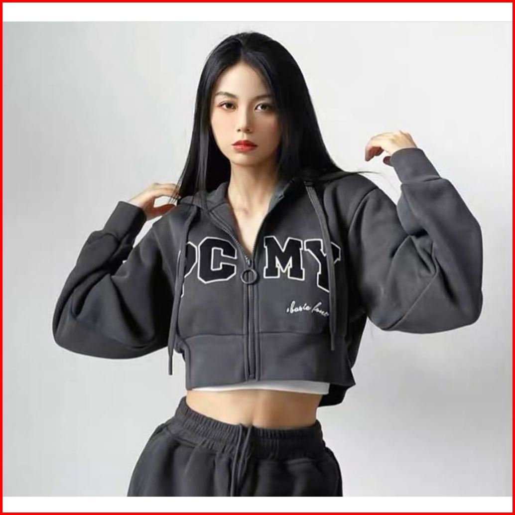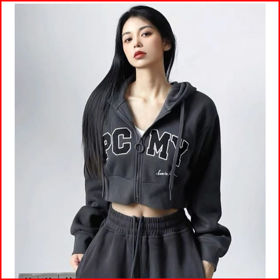 Pcmy Crope Hoodie Zipper Sweater - Sweater Crope Top Wanita