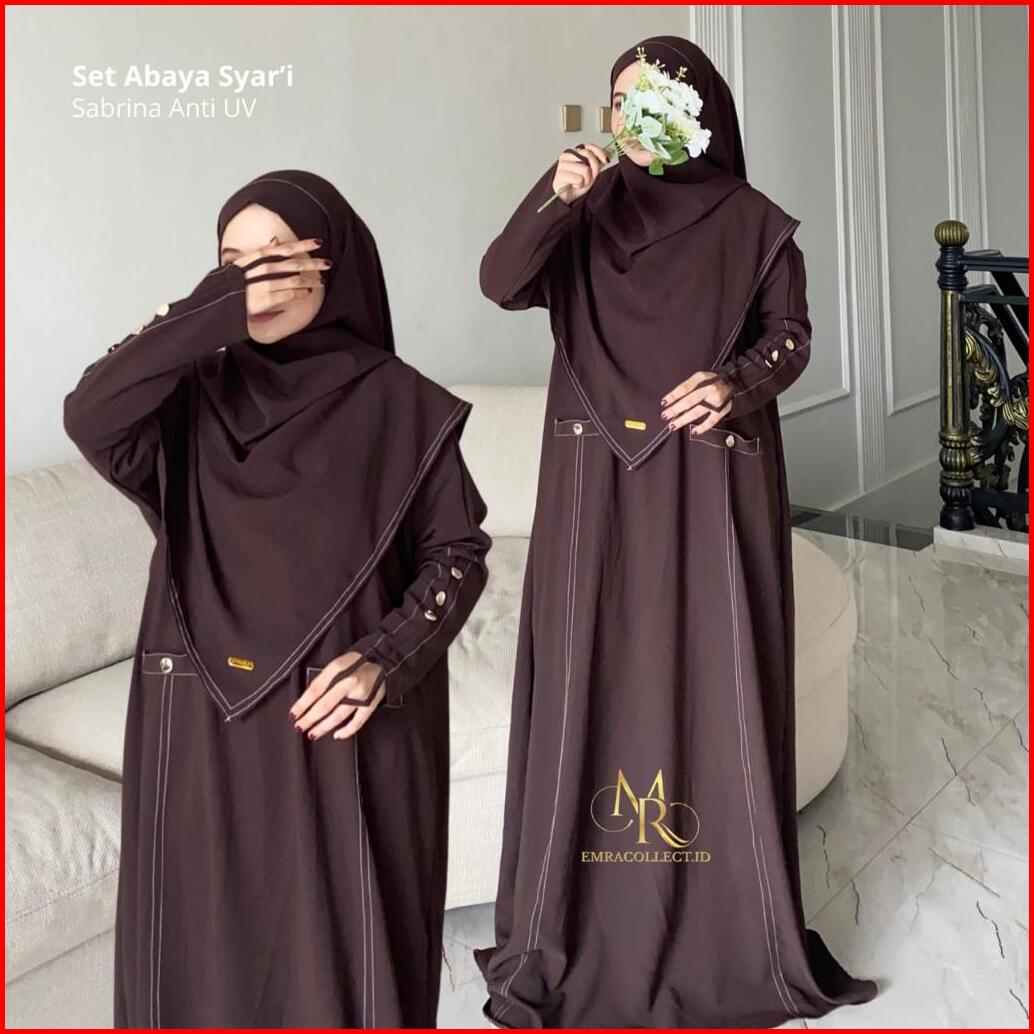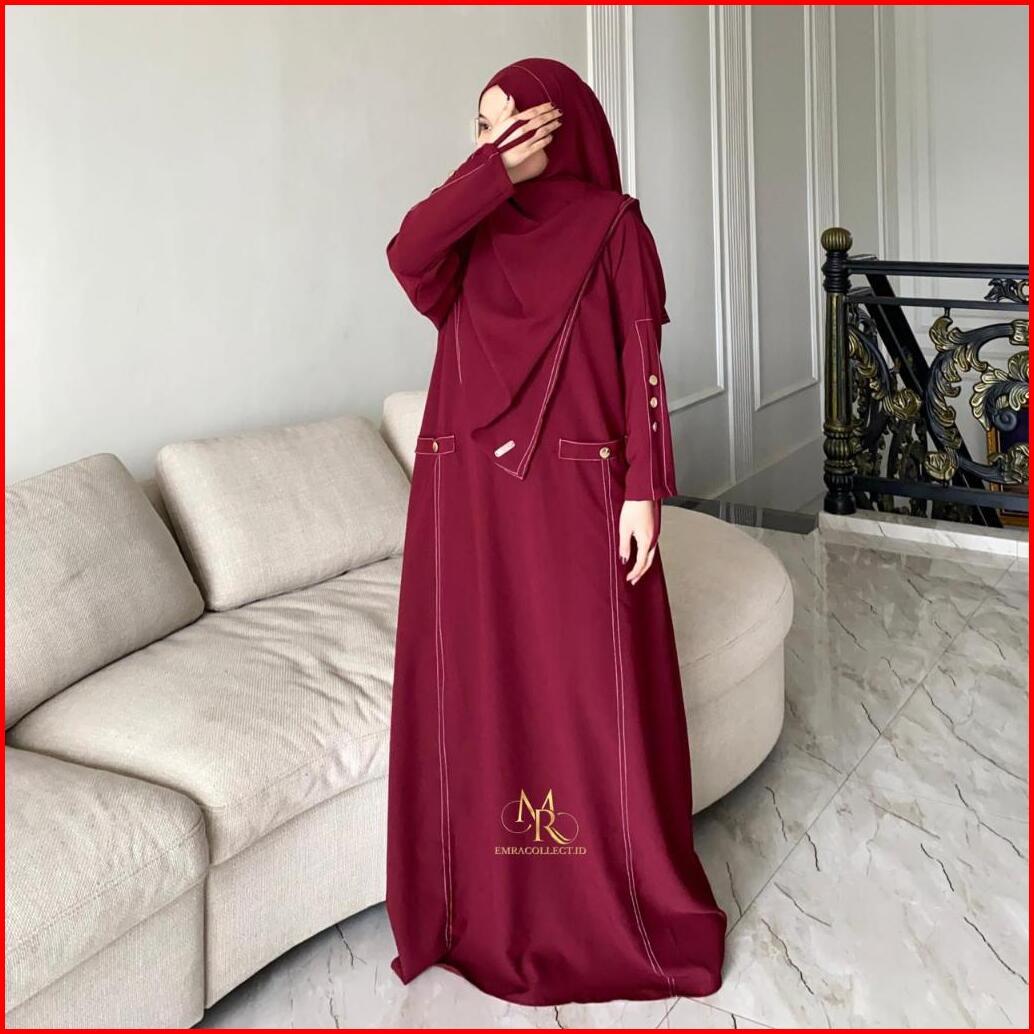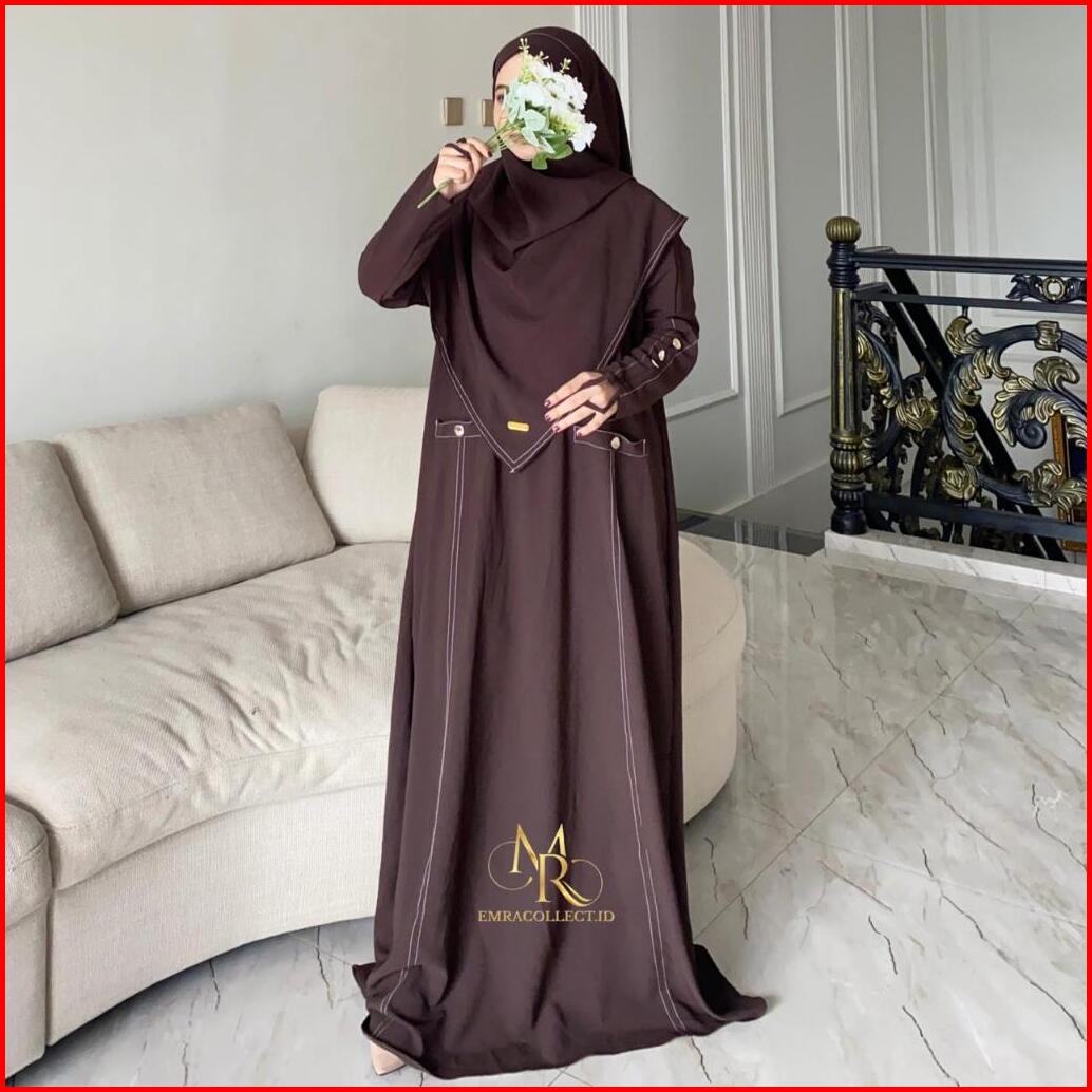 Abaya Raudha Series Pashmina Bandana Set Baju Syar I Umroh Gamis Wanita Anti Uv Premium - Emra
