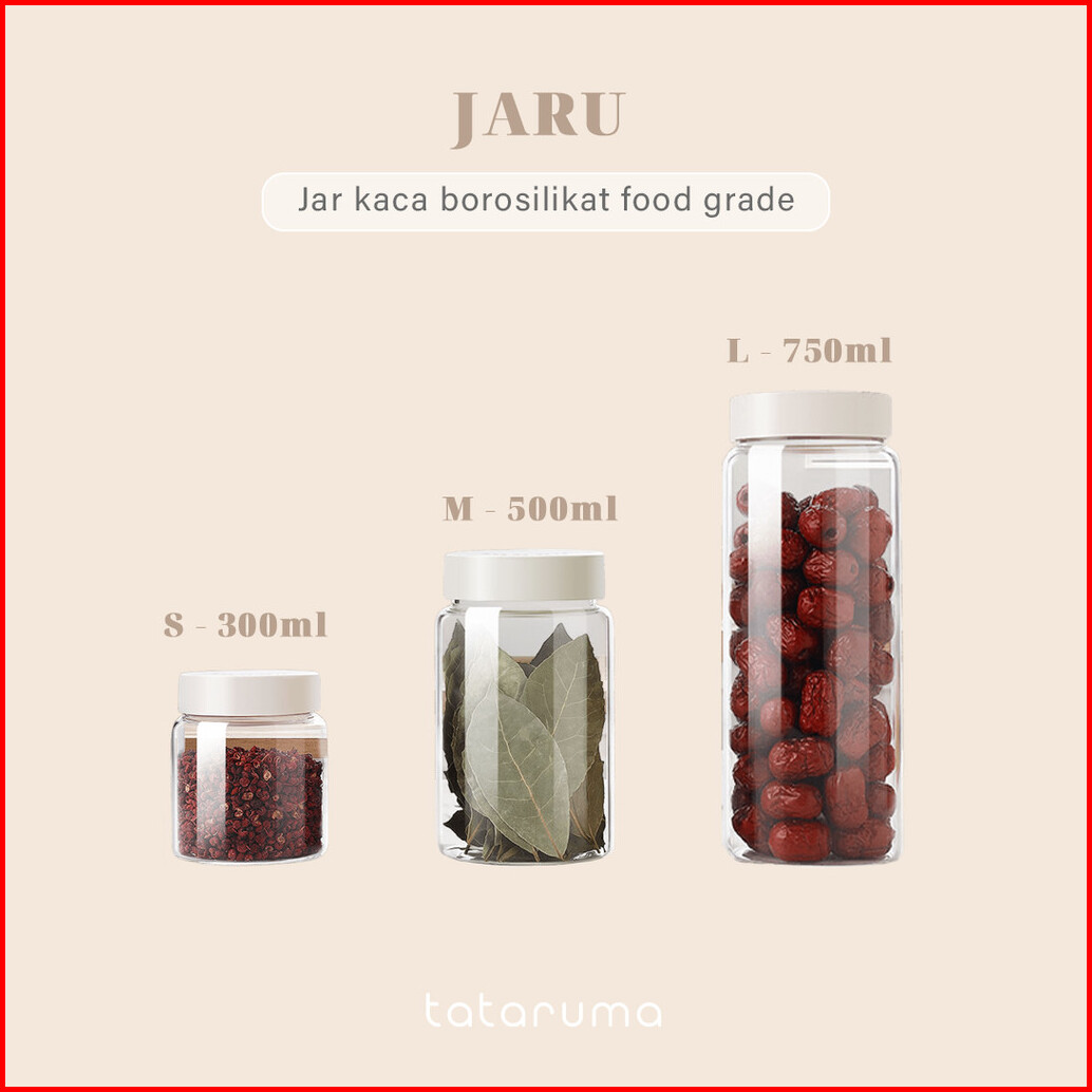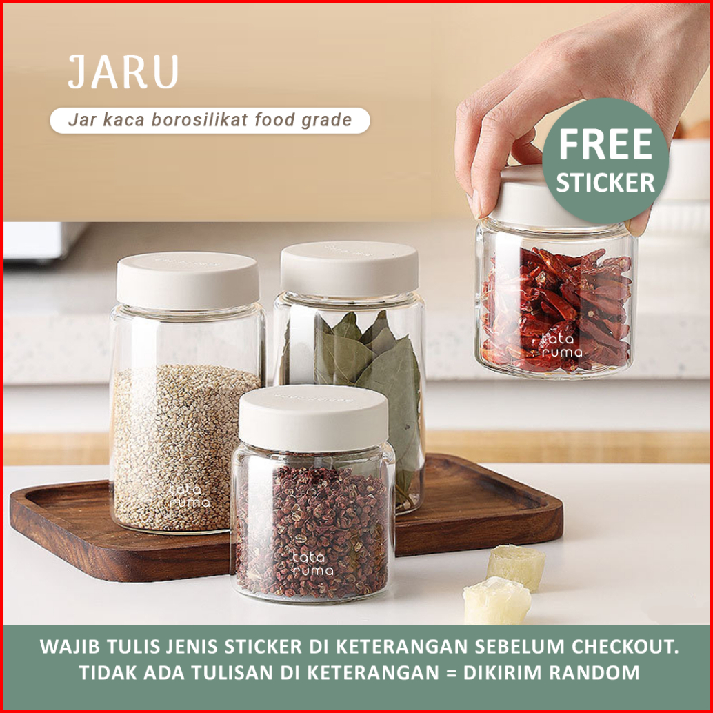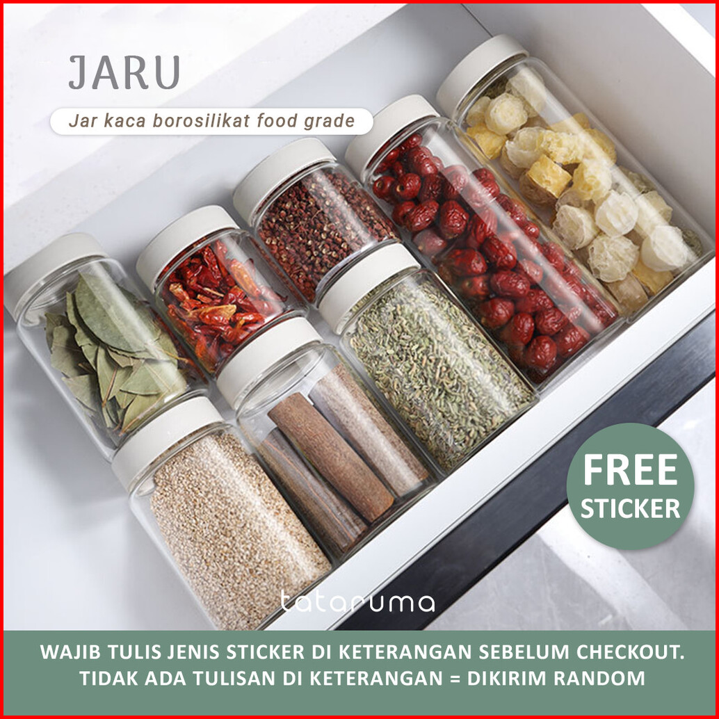 Tataruma Jaru - Jar Kaca Borosilikat Food Grade Tempat Bumbu Rempah Kopi Gula Teh Kaca Kedap Udara Free Sticker