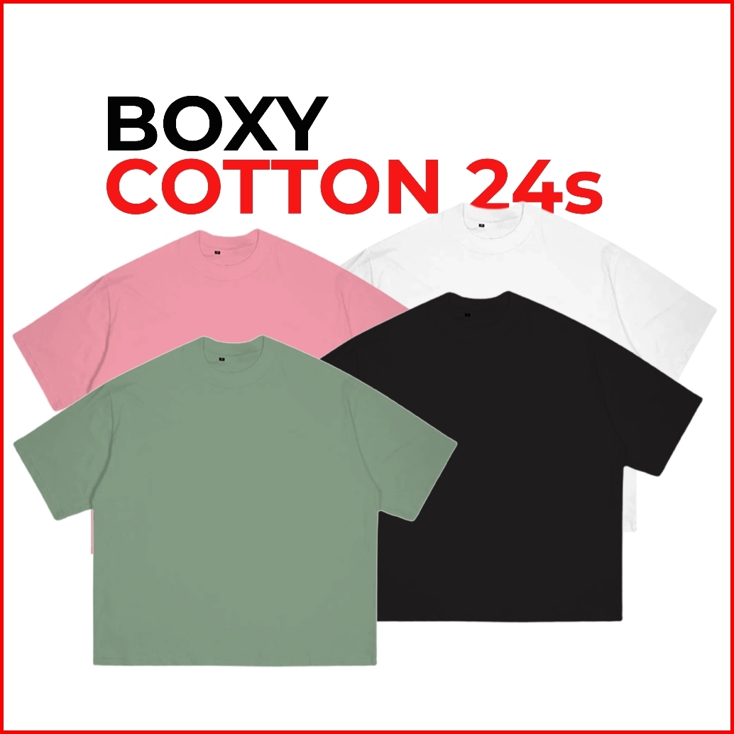 T Shirt Boxy Fit Tee Cotton Combed 24s Polos Baju Kaos Distro Pria Wanita Polos Oversize