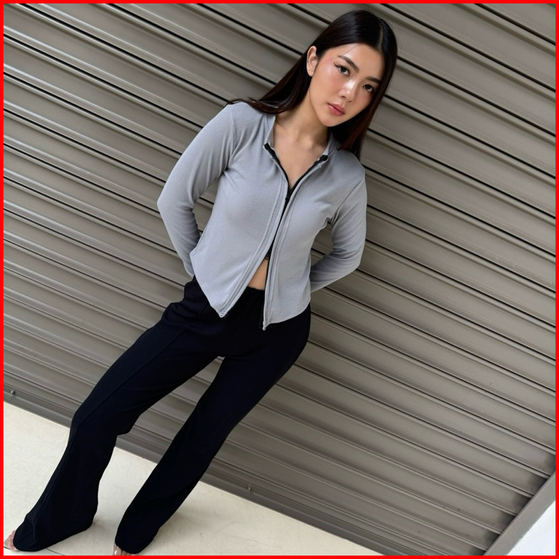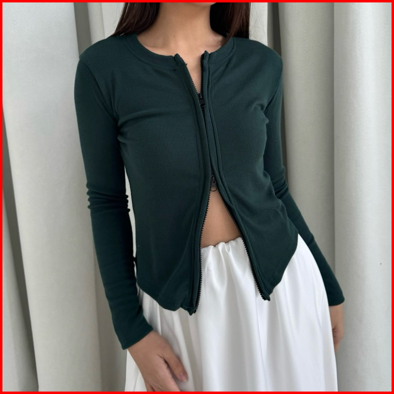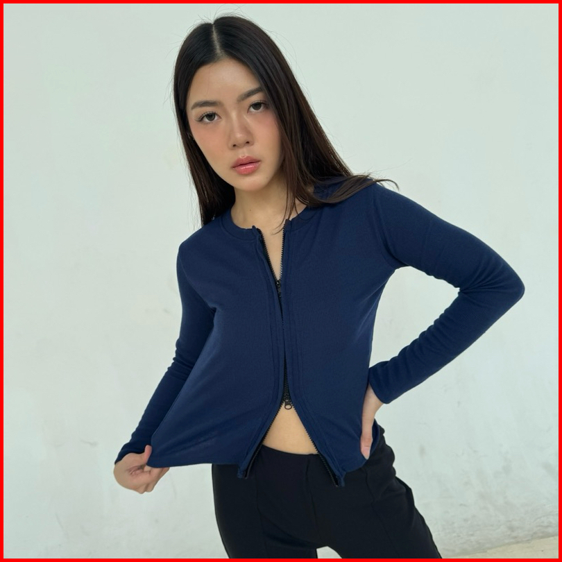 Jude Top Atasan Knit Wanita Lengan Panjang Zipper Basic Korean Top Summer Baju Knit Square Collar Rib Wanita Long Sleeve