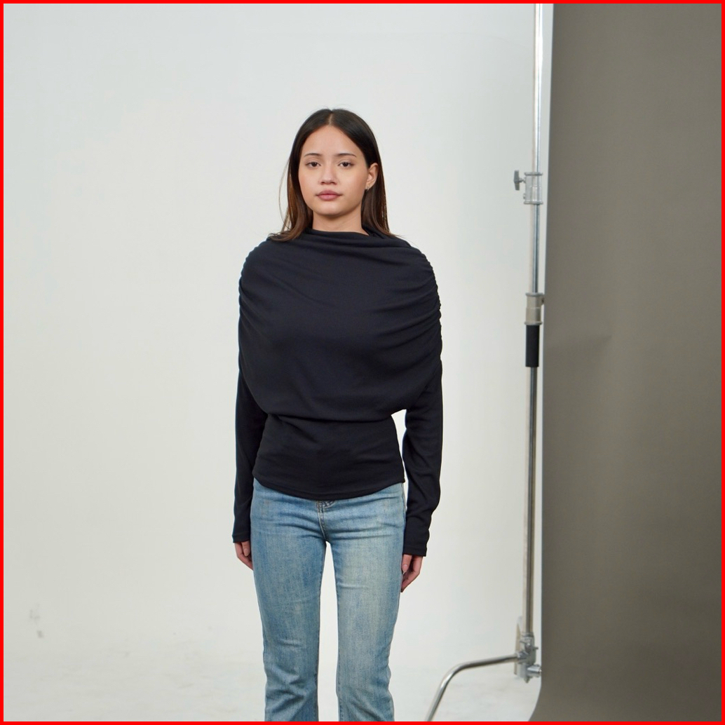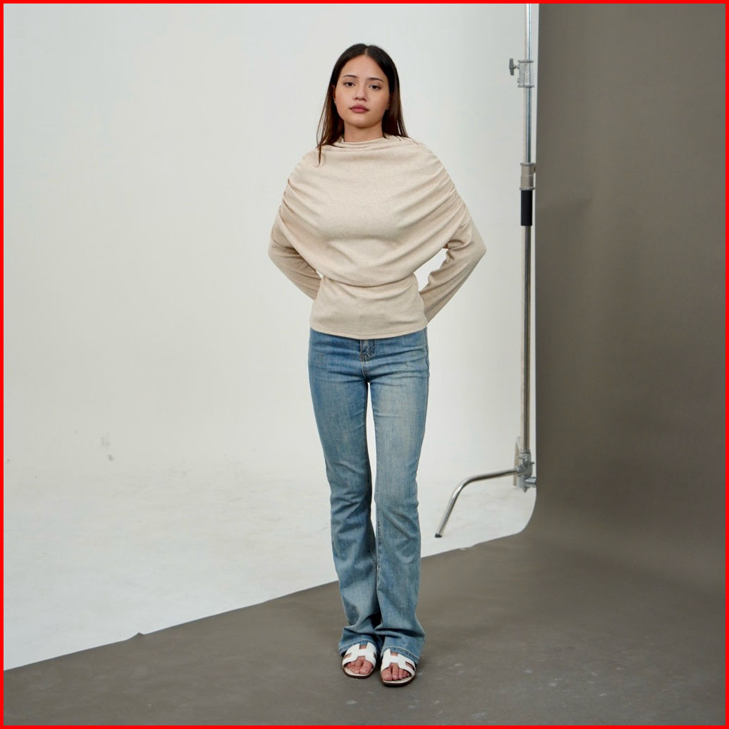 Salma Top - Atasan Knit Wanita Lengan Panjang Ruched Pleated Rample Basic Korean Top Summer Baju Knit Boat Neck Rib Wani