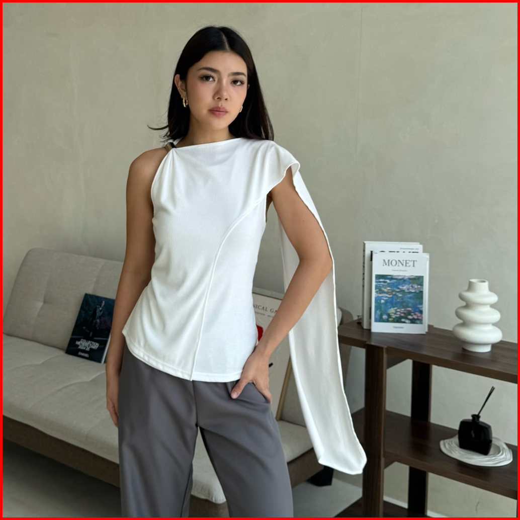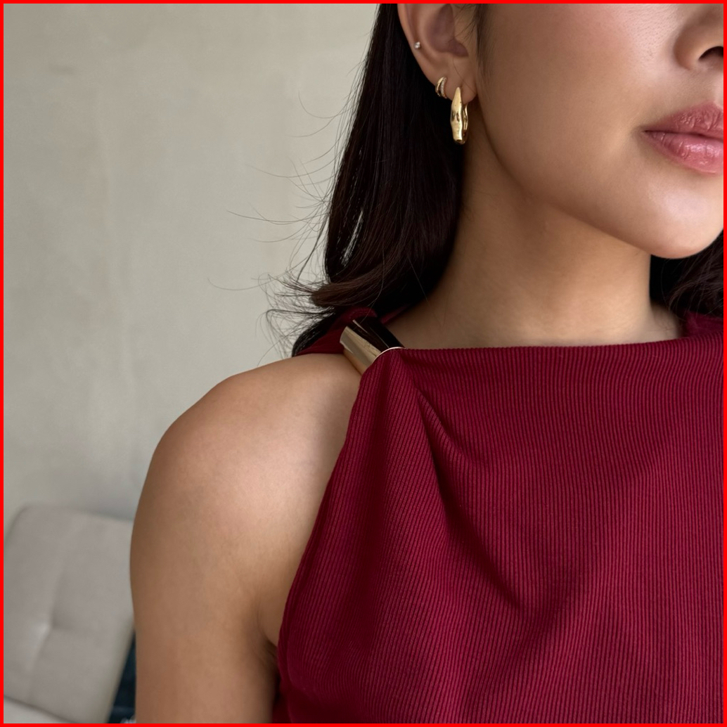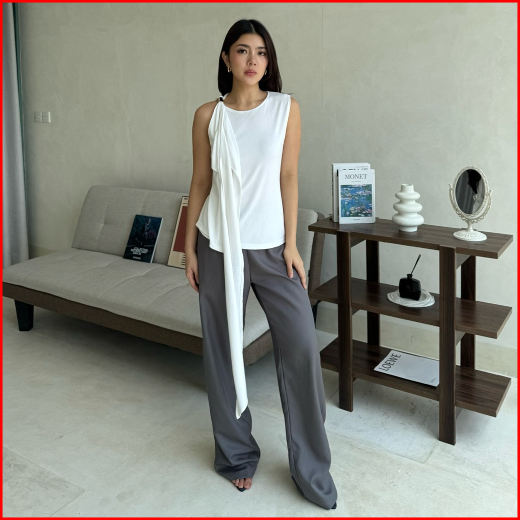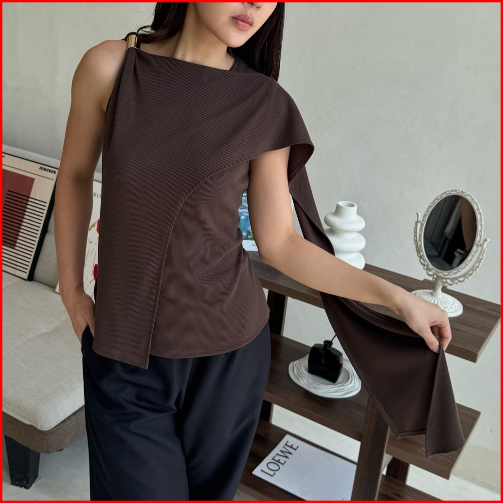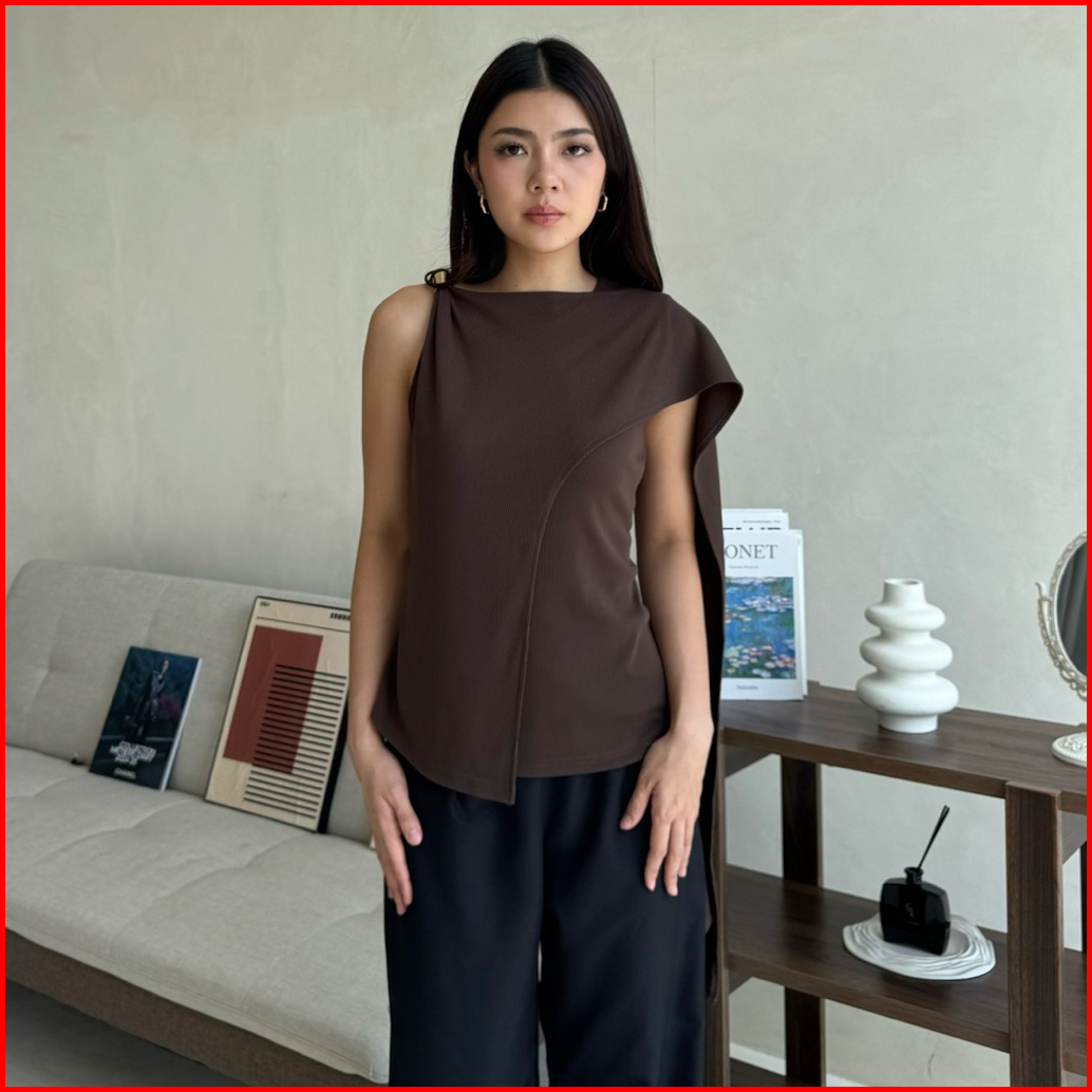 Rae Top - Atasan Knit Wanita Lengan Pendek Scarf Kancing Basic Korean Vest Top Summer Baju Knit Kancing Rib Wanita Short