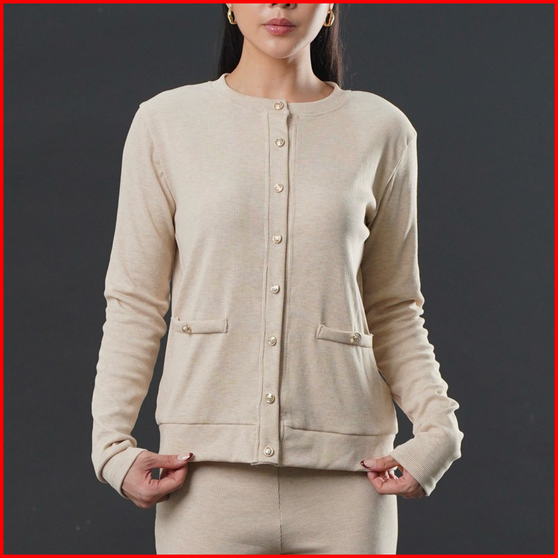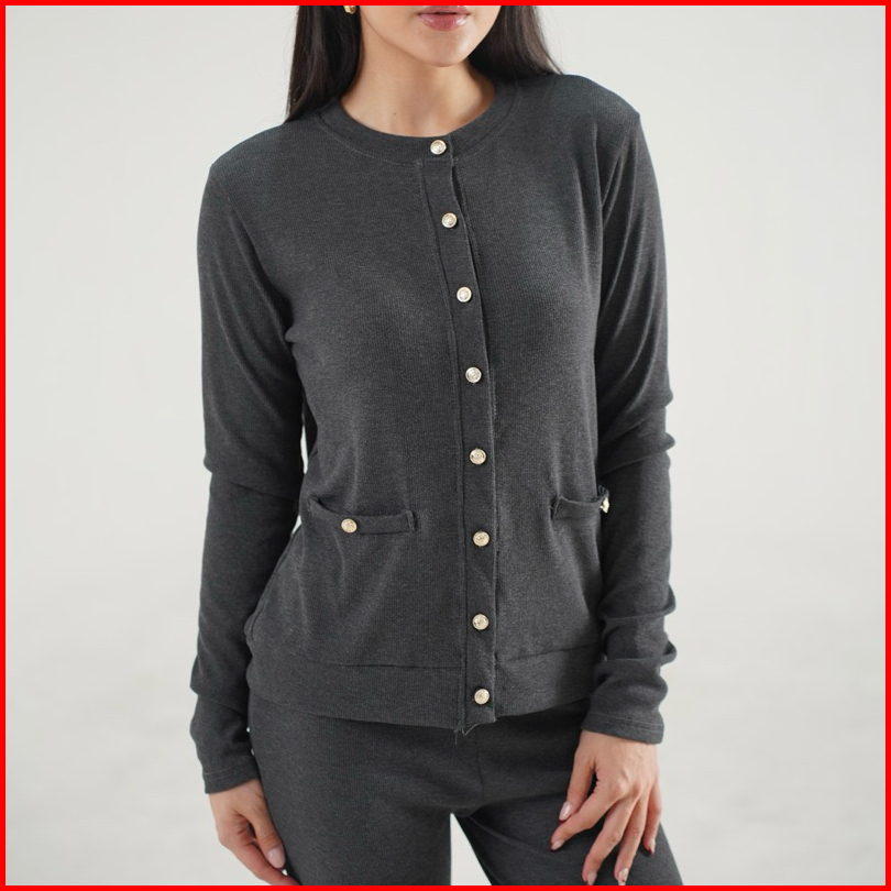 Angel Top - Atasan Knit Wanita Lengan Panjang Kancing Basic Korean Top Summer Baju Knit Kancing Rib Wanita Long Sleeve S