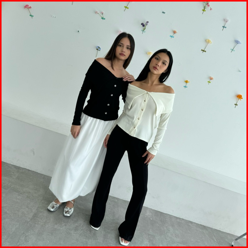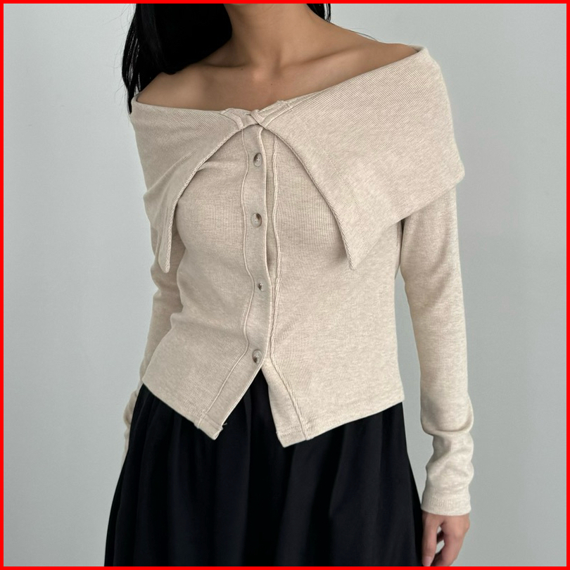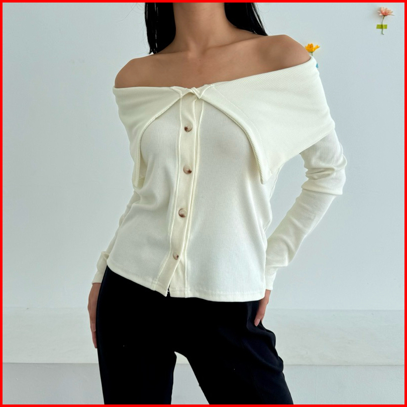 Soya Top Atasan Knit Wanita Off Shoulder Buttons Korean Top Basic Baju Summer Knit Rib Wanita Lengan Panjang Kancing Lon