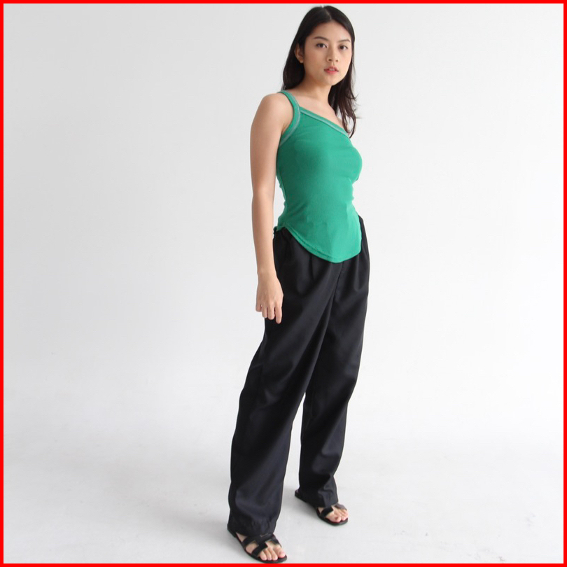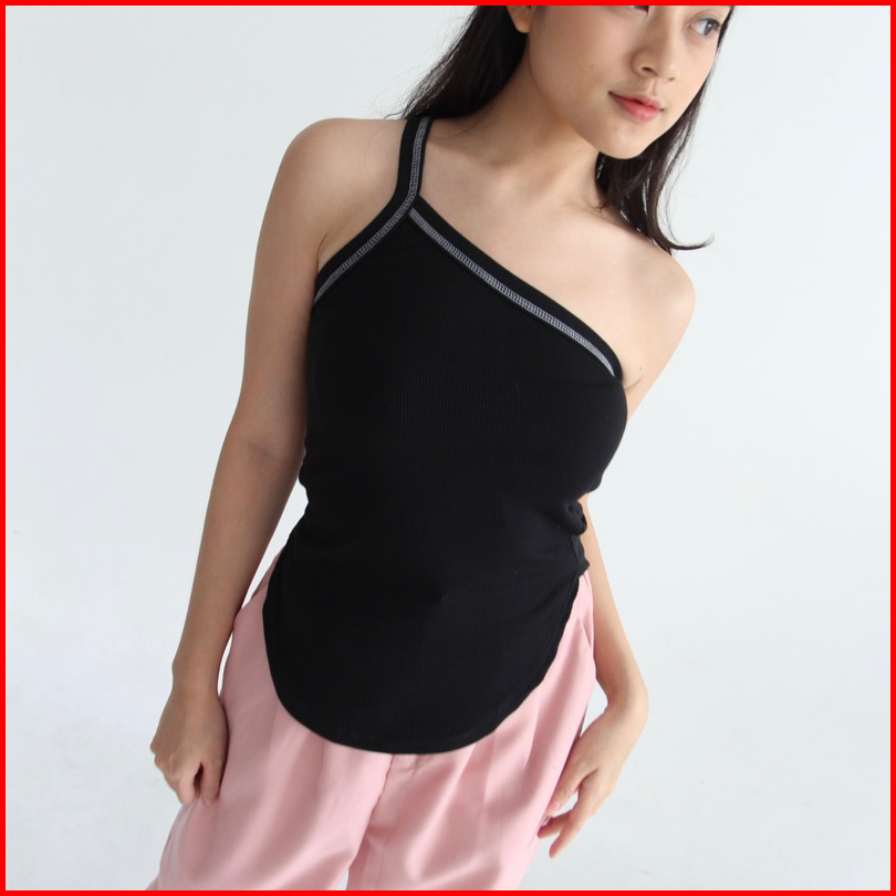 Inka Top - Soma Ribbed Knit Assymetric Tank Tanktop Atasan Wanita Summer Kotak Atasan Semi Long Crop Top Stretch Rib Rib