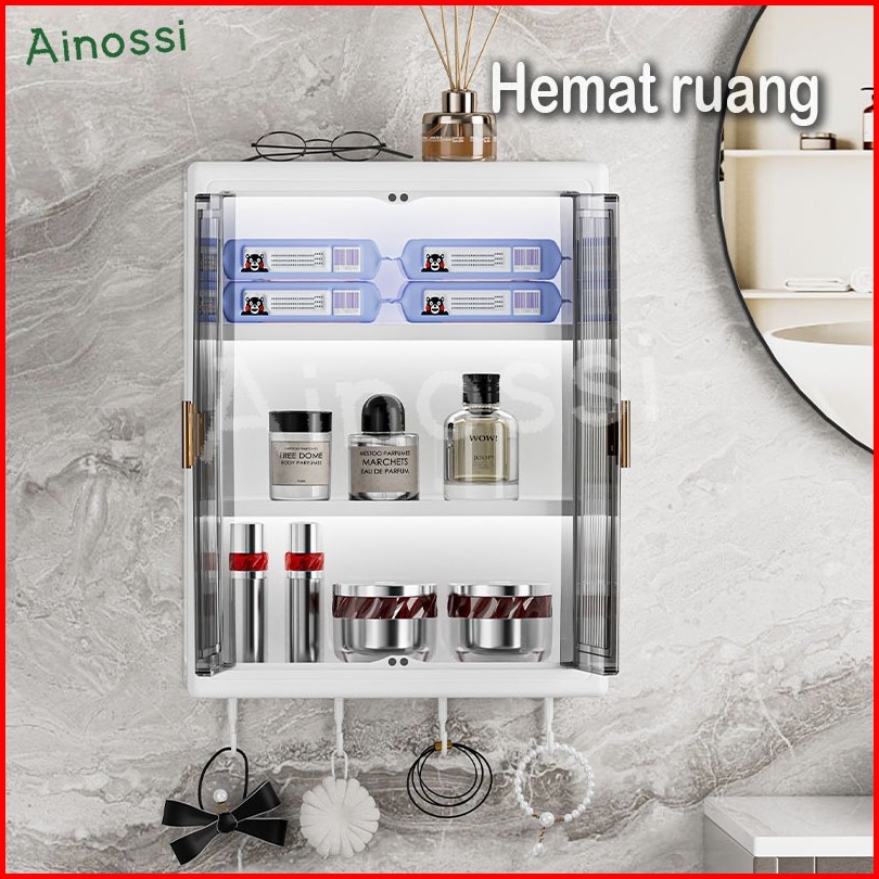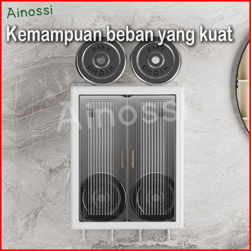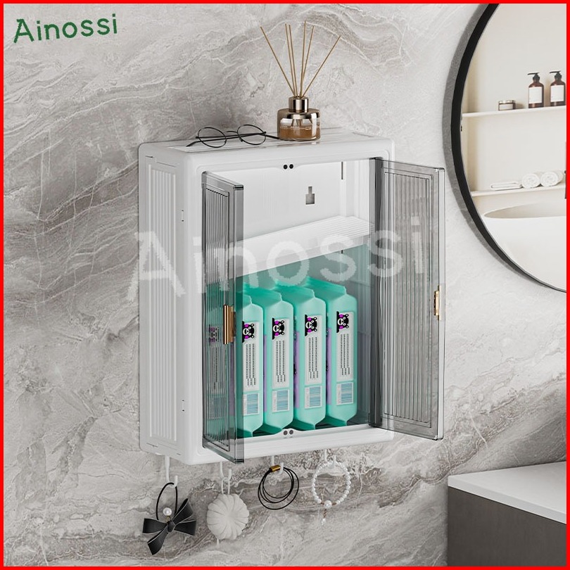 Ainossi Lemari Plastik Kamar Mandi Dinding Aesthetic Kabinet Kamar Mandi Tertutup Kotak Rak Kamar Mandi Lemari Penyimpan