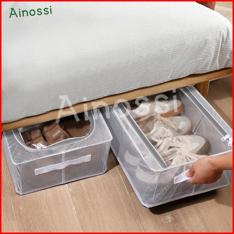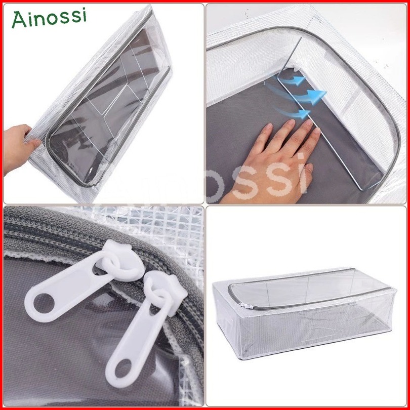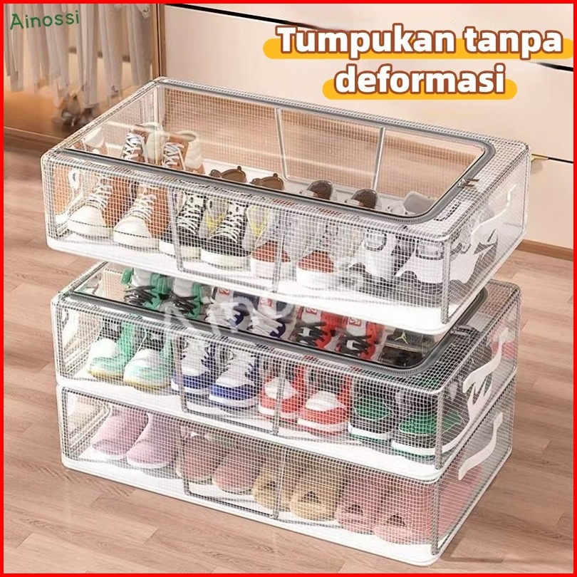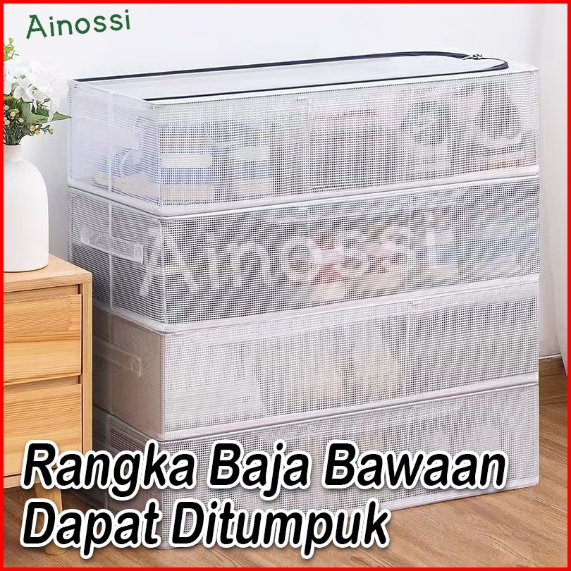 Ainossi Kotak Sepatu Dengan Rangka Besi Pakaian Storage Box Kotak Penyimpanan Di Bawah Tempat Tidur Transparan Organizer
