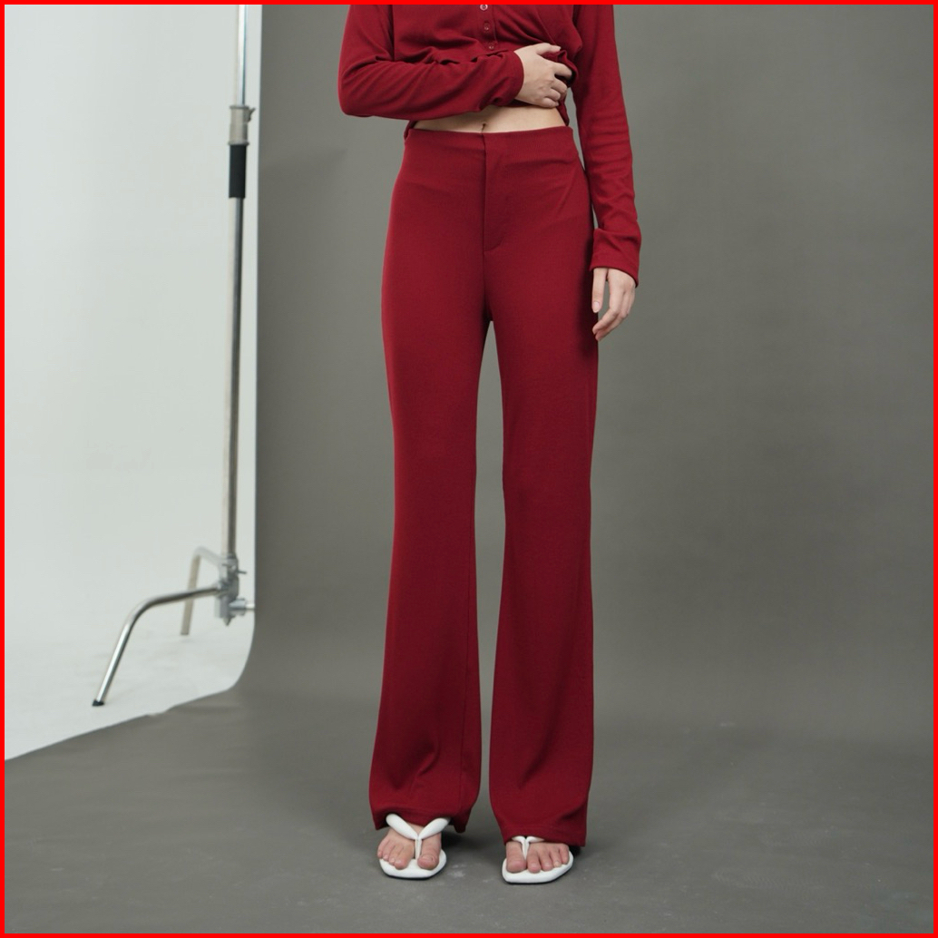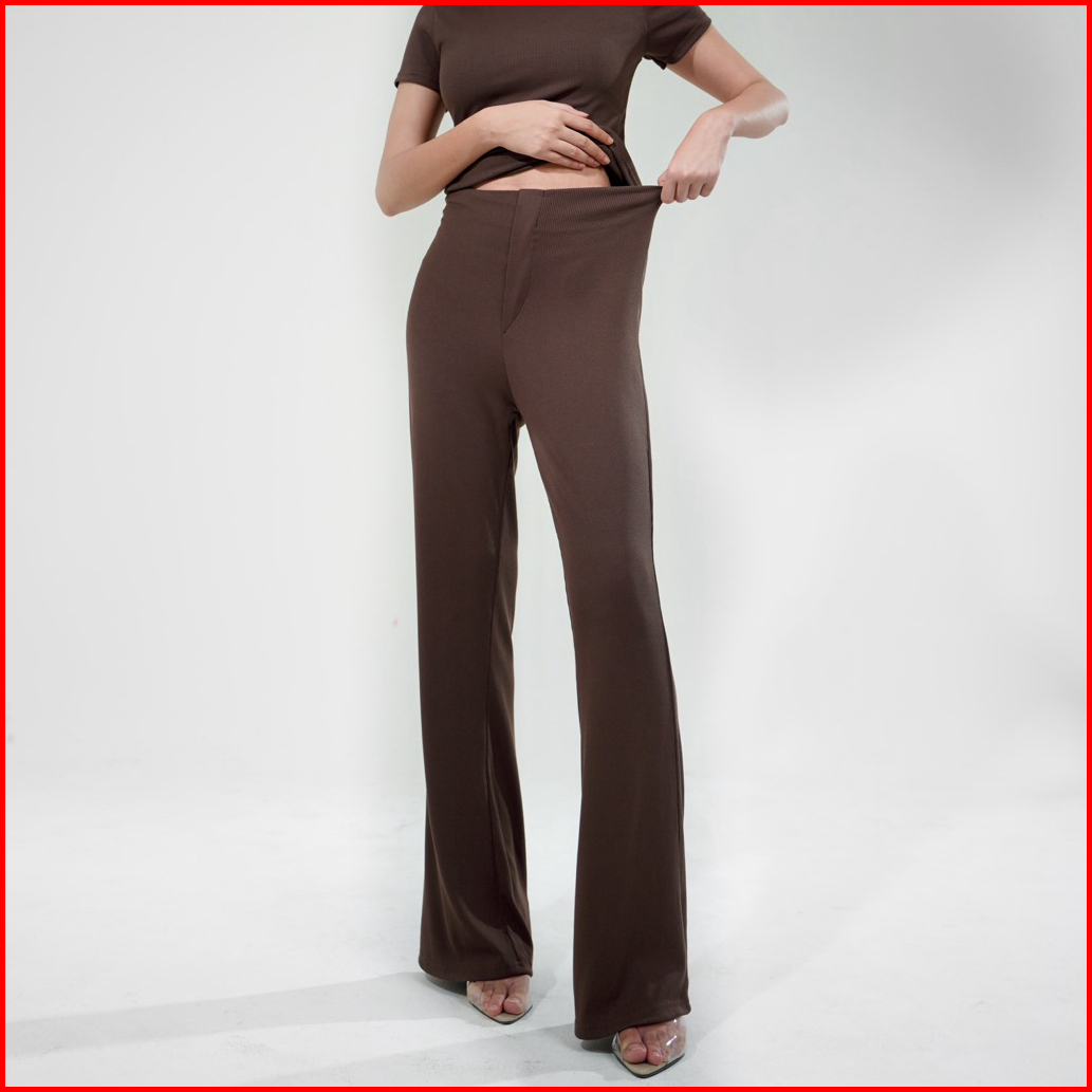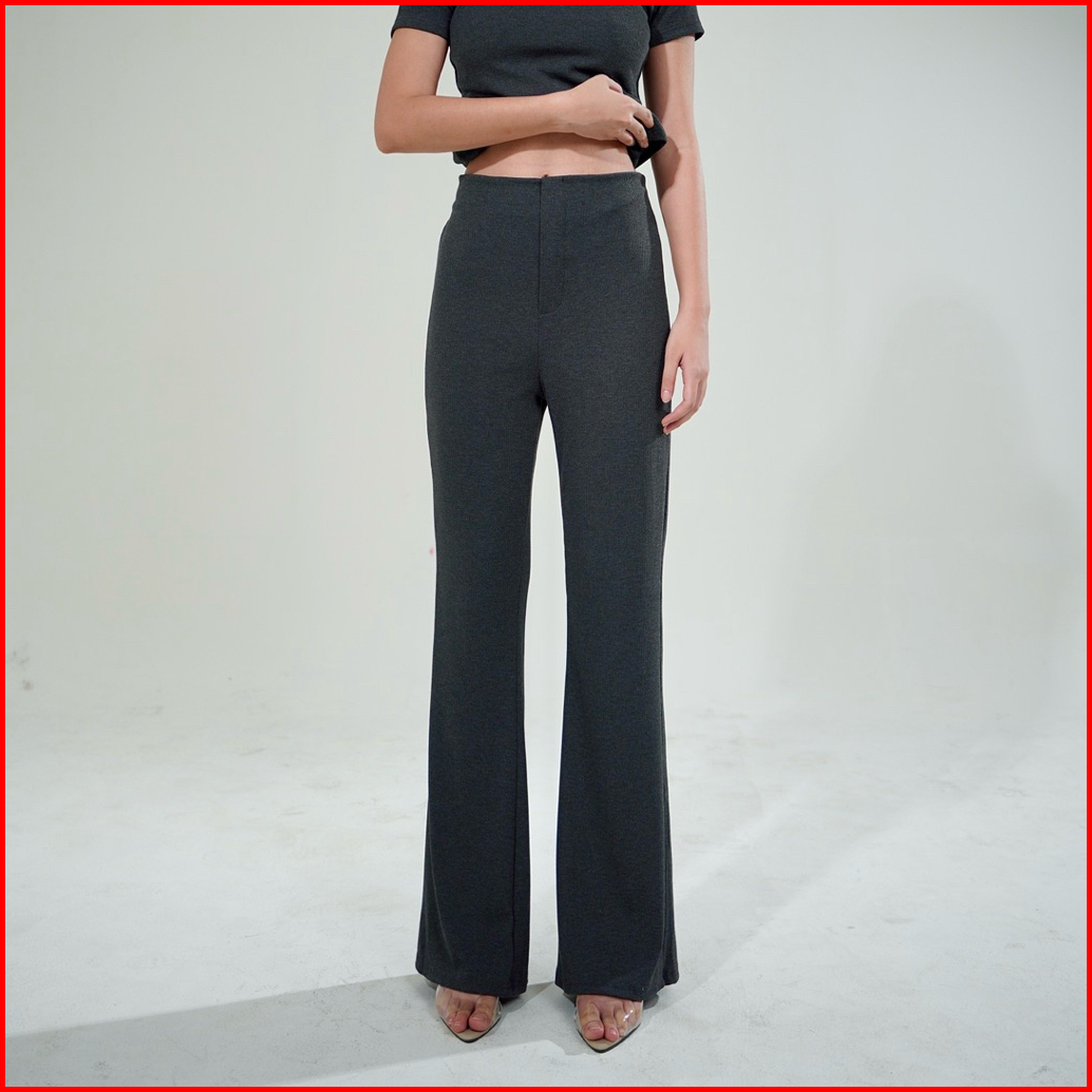 Bondi Pants - Celana Panjang Knit Wanita Highwaist Long Cullote Pants Loose Straight Flare Cutbray Pants Basic Rib Knit