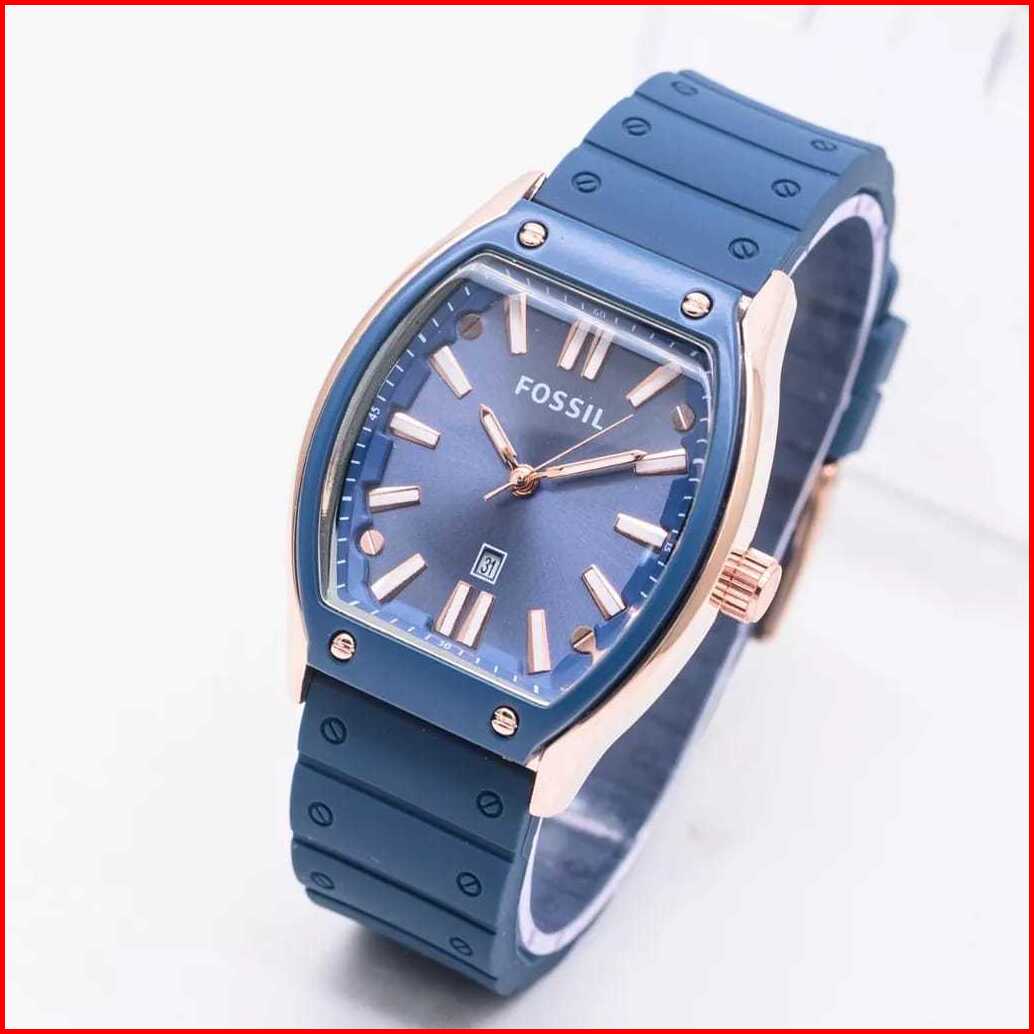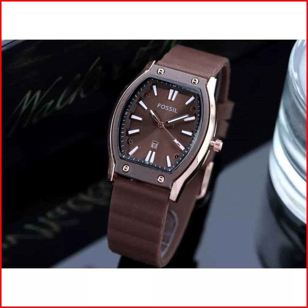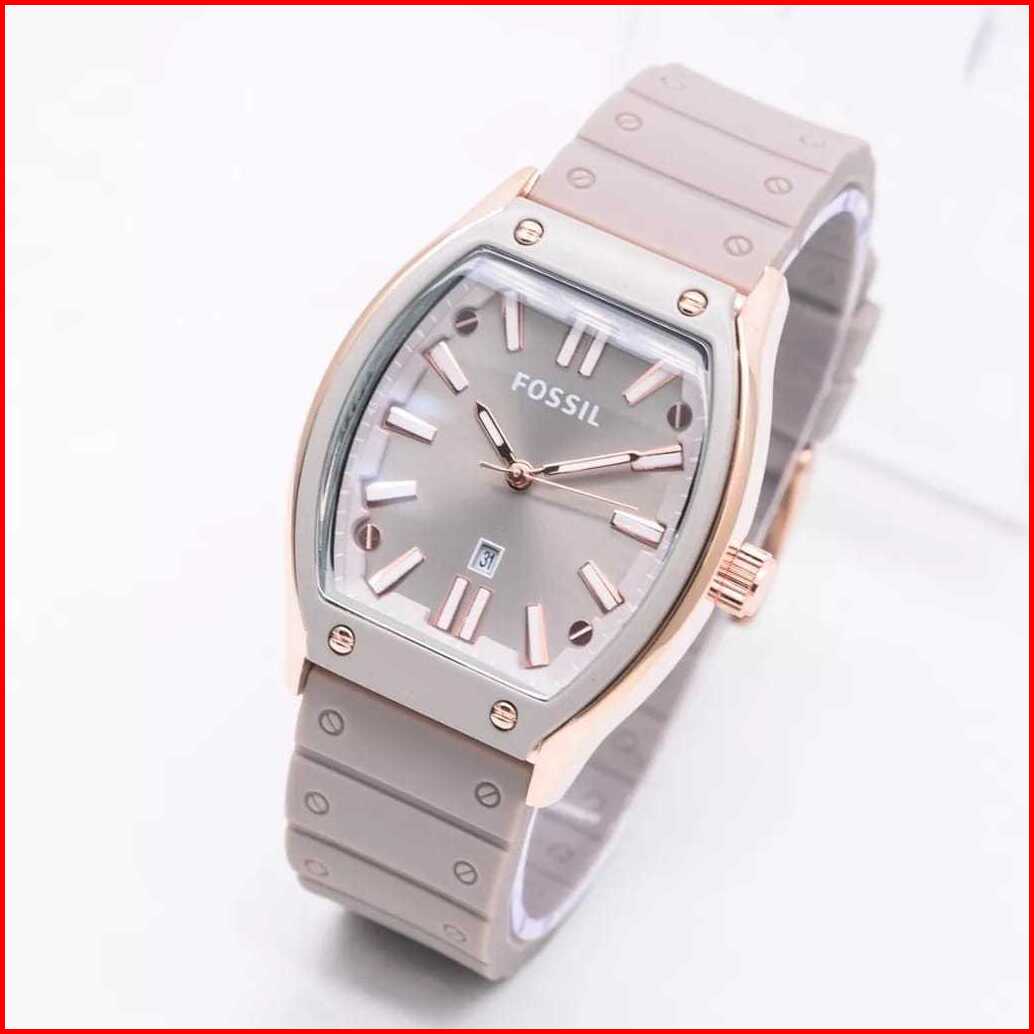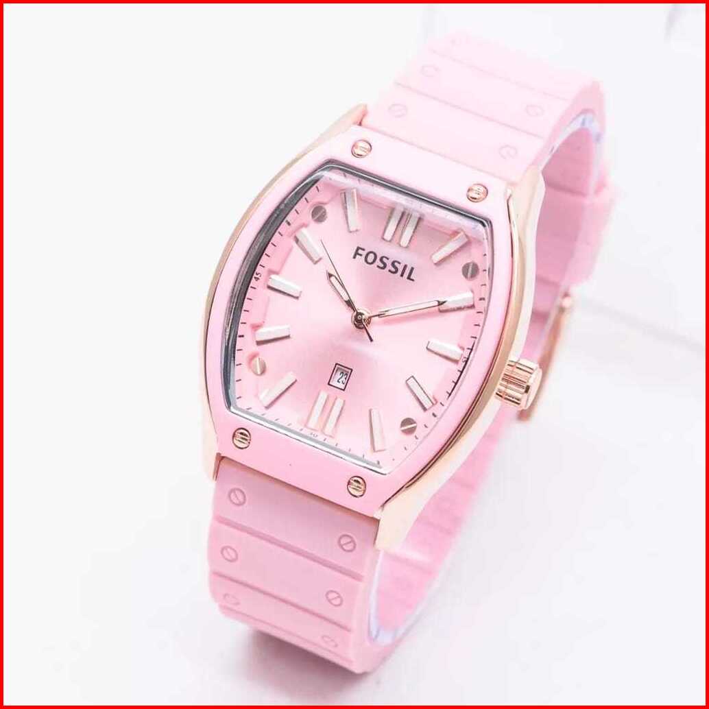 Jam Tangan Wanita F-oss1l Rubber Karet Body Oval Tanggal Aktif Free Box Analog Quartz Tahan Air