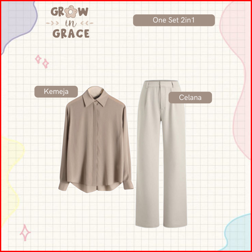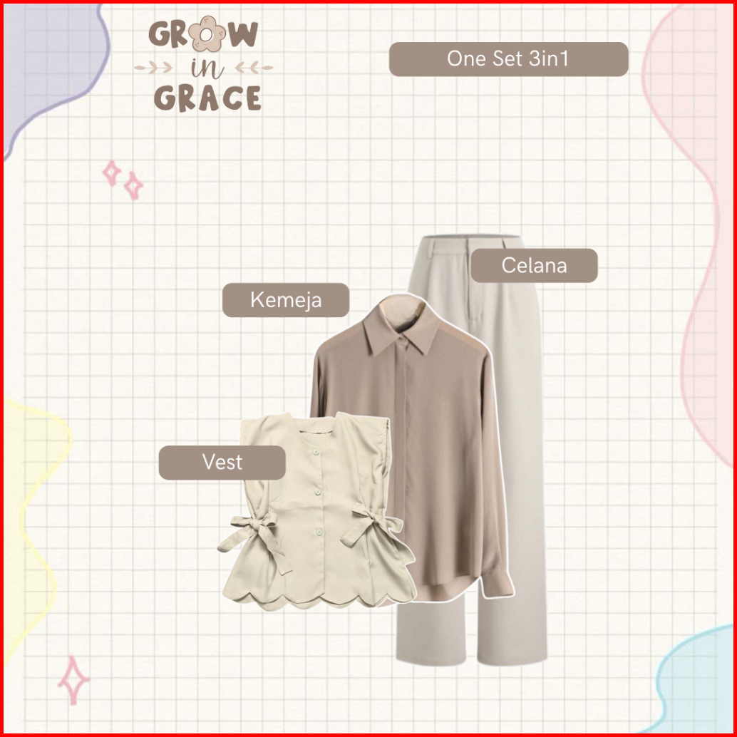 Outfit Ngopi One Set Wanita Kekinian Vest Kemeja Celana Jilbab Setelan Cewek - Bu69n