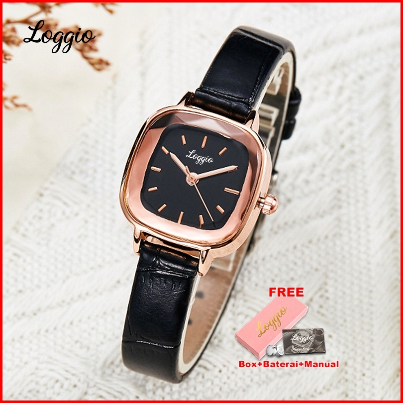 Loggio Jam Tangan Wanita Kecil Jam Original Square Dial Tali Kulit Jam Tangan Cewek Anggun Santai
