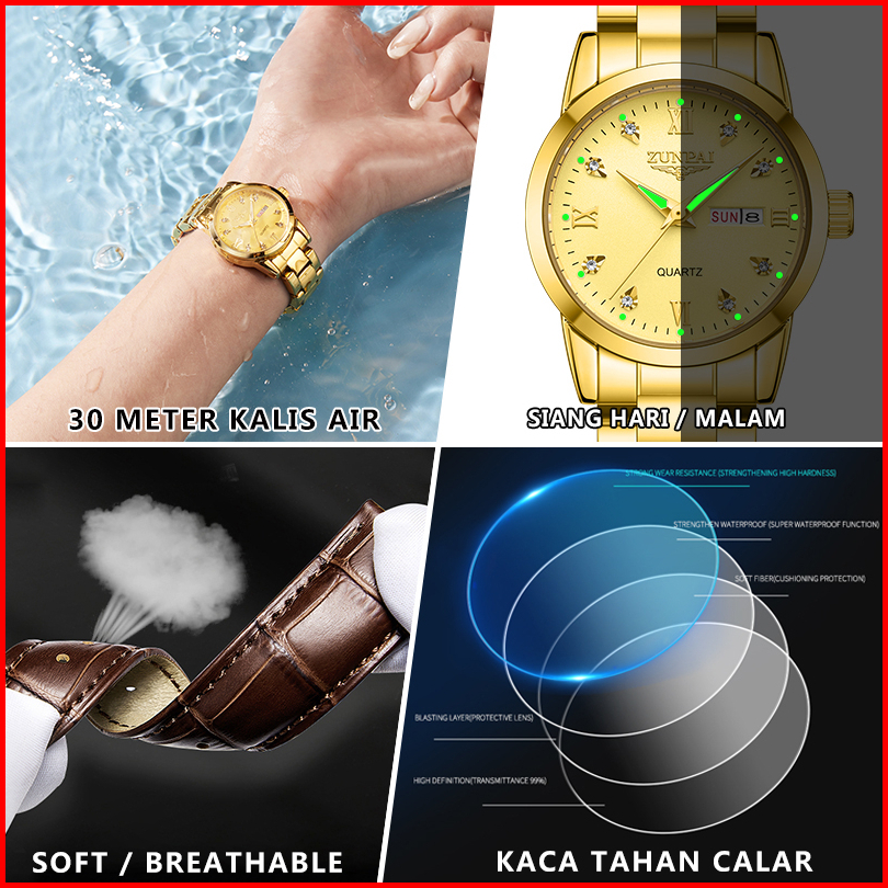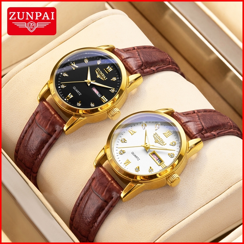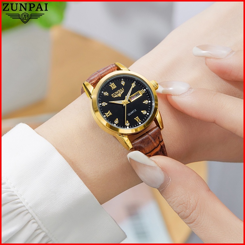 Zunpai Jam Tangan Wanita Kekinian Original Anti Air Impor Bermerek Cewek Elegan Mewah Tali Kulit Kuarsa Arloji Terbaru
