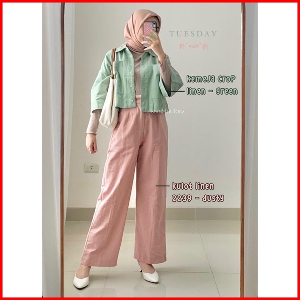 Loose Pants Highwaist Celana Kulot Polos Bahan Premium Crinkle Airflow