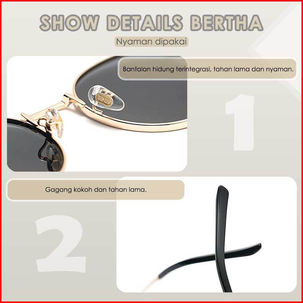 Bertha Kacamata Sunglasses Anti Uv 400 Anti Silau Bahan Metal Kuat Kokoh Fashion Style Retro Bulat Terbaru 9202