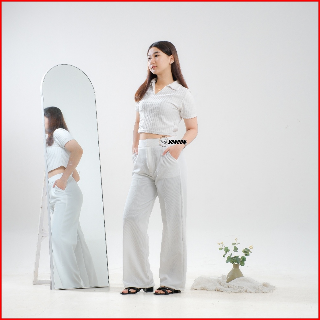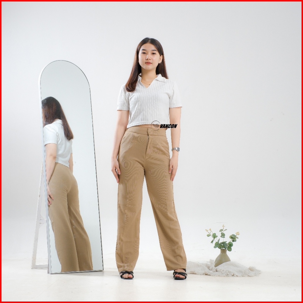 Celana Kulot Cozie Pants Cullote Highwaist Pants Rib Knit Premium Petite Friendly Celana Anti Kusut
