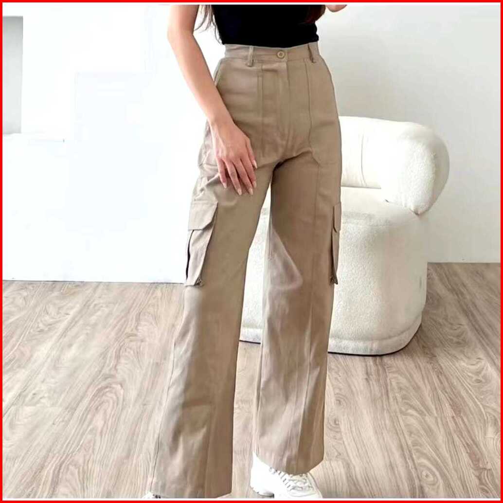 Cargo Pants Wanita Highwaist Loose Pants Korean Style Jumbo - Celana Cargo Wanita Terbaru
