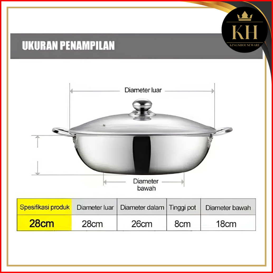 Panci Shabu 28 Dan 30 Cm Tutup Kaca Panci Sekat Hotpot Steamboat Stainless
