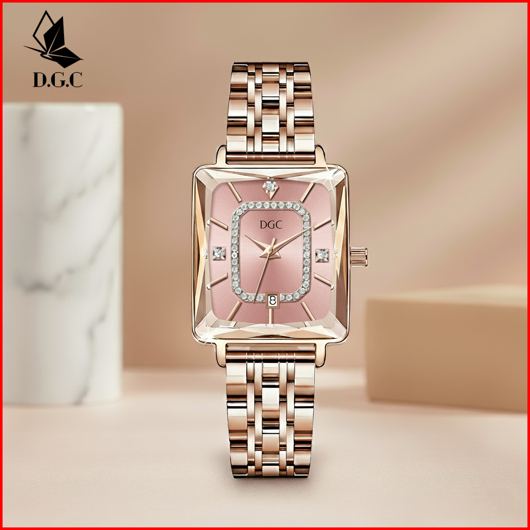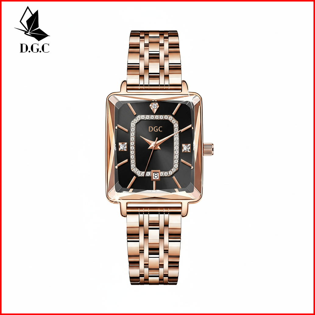 Dgc 30183 Jam Tangan Wanita Fashion Terbaru Elegant Bentuk Persegi Berkilau Leisure Jam Tangan Quartz Analog Tanggal Cla