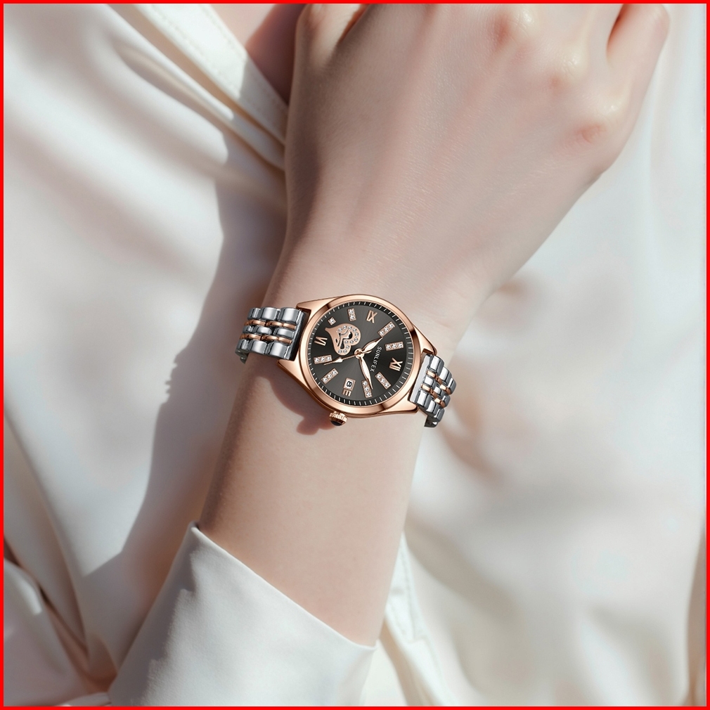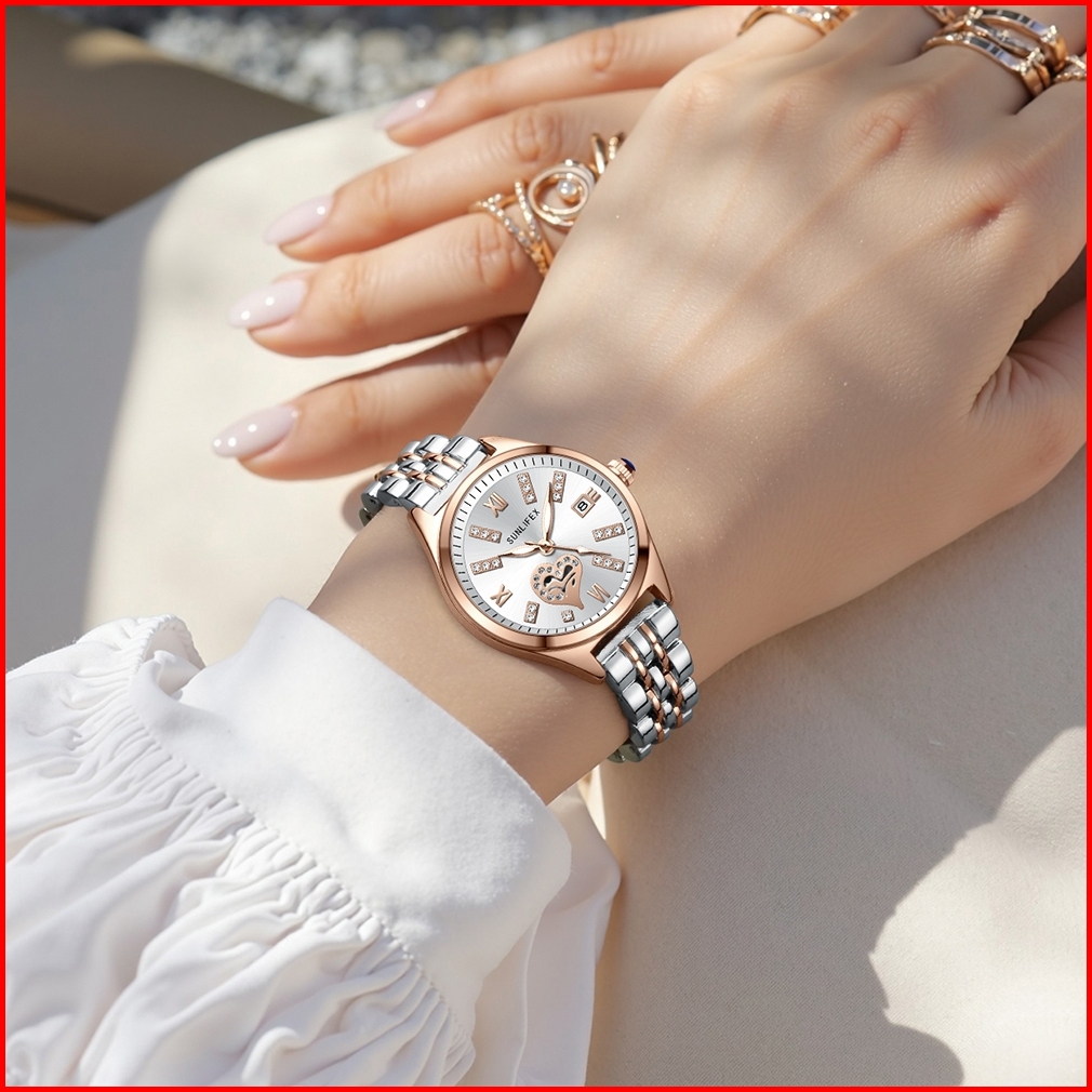 Sunlifex Jam Tangan Wanita Original Tali Paduan Kasual Mode Kuarsa Jam Tangan Cewek