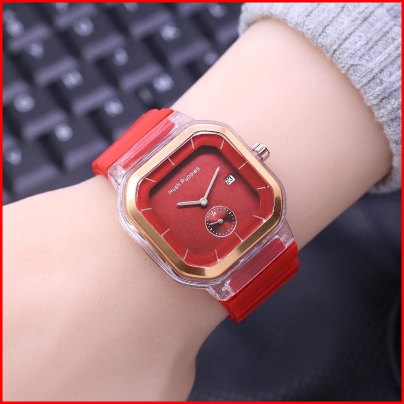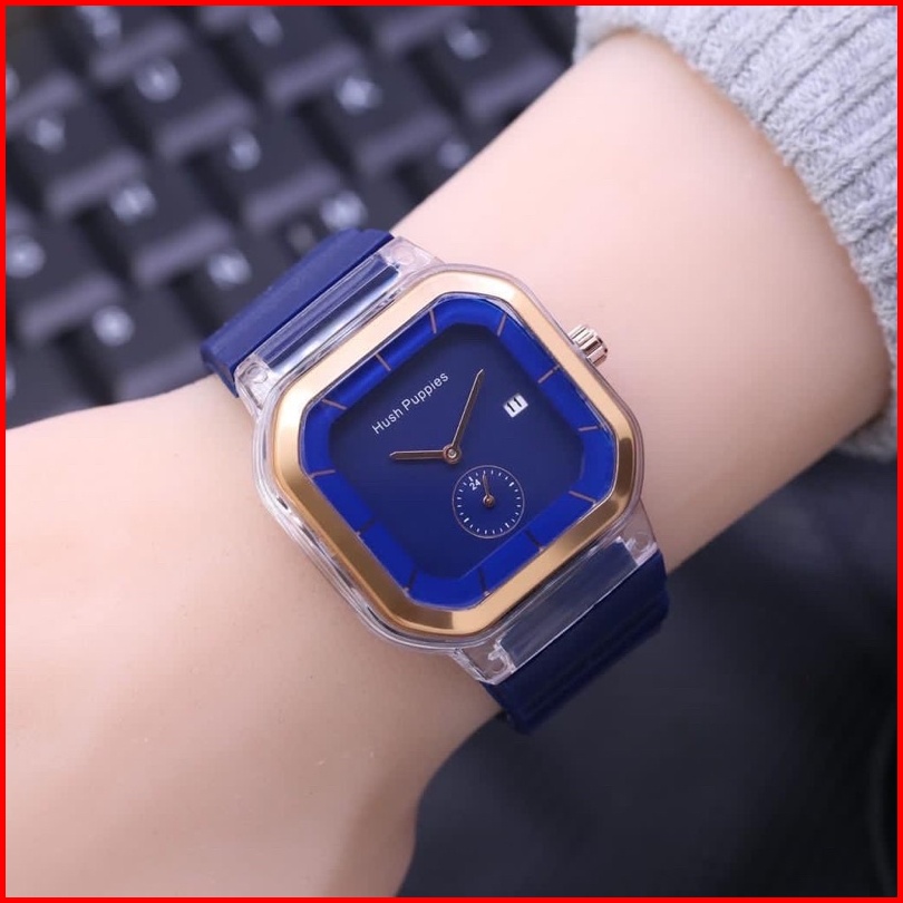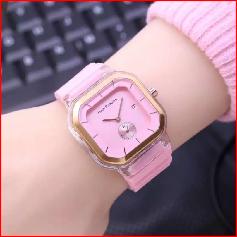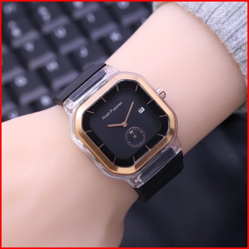 Jam Tangan Wanita Korea Hush Puppies Rubber Kotak Crono Off Hiasan Hp-70