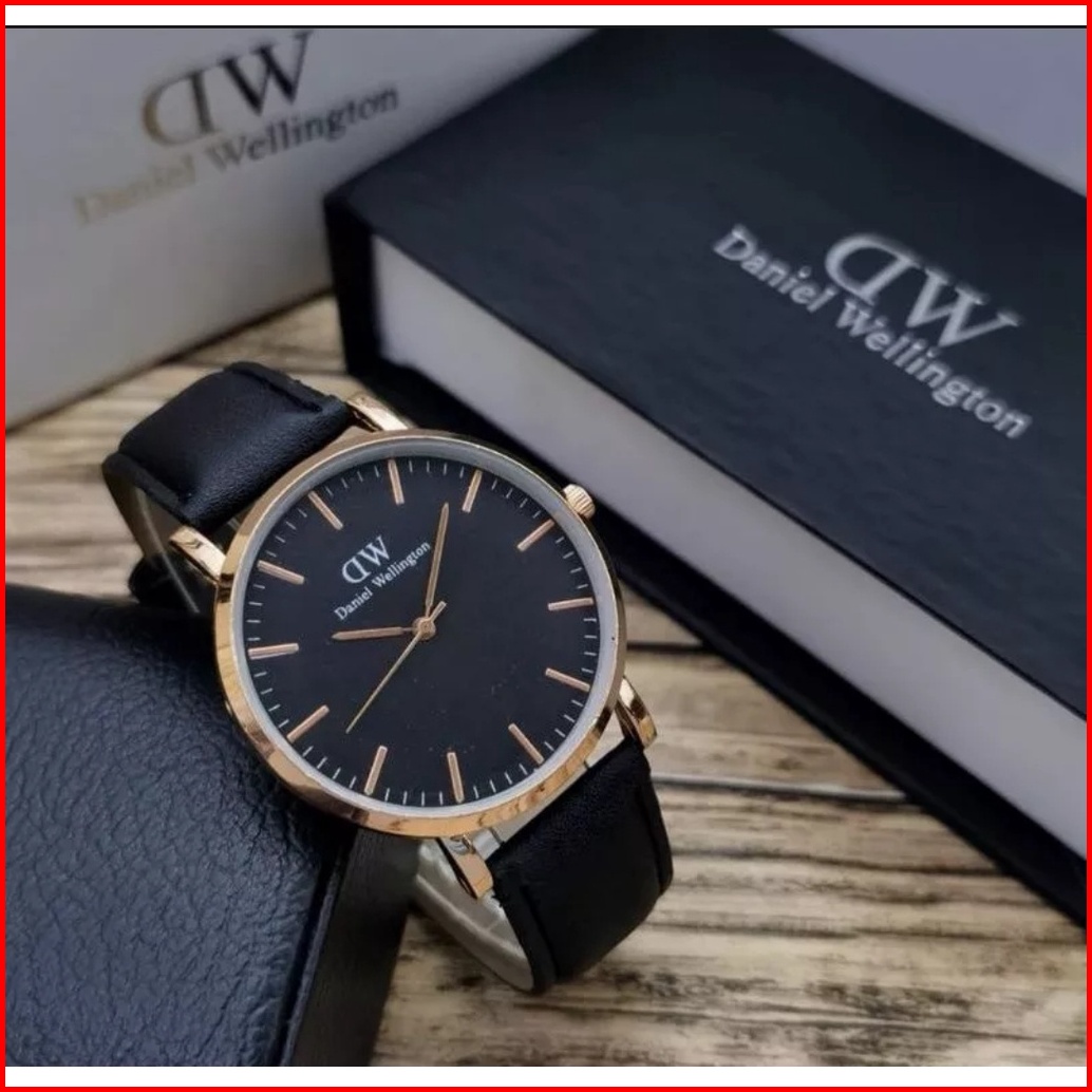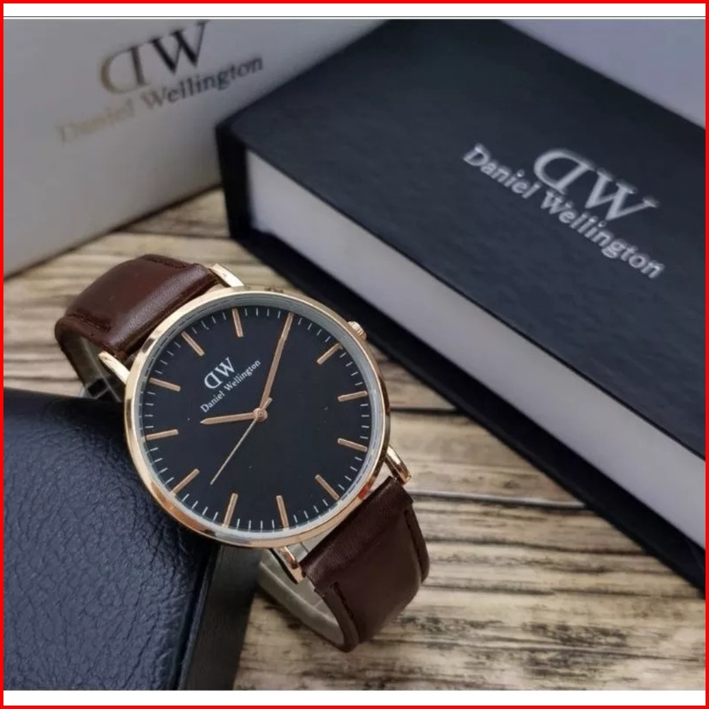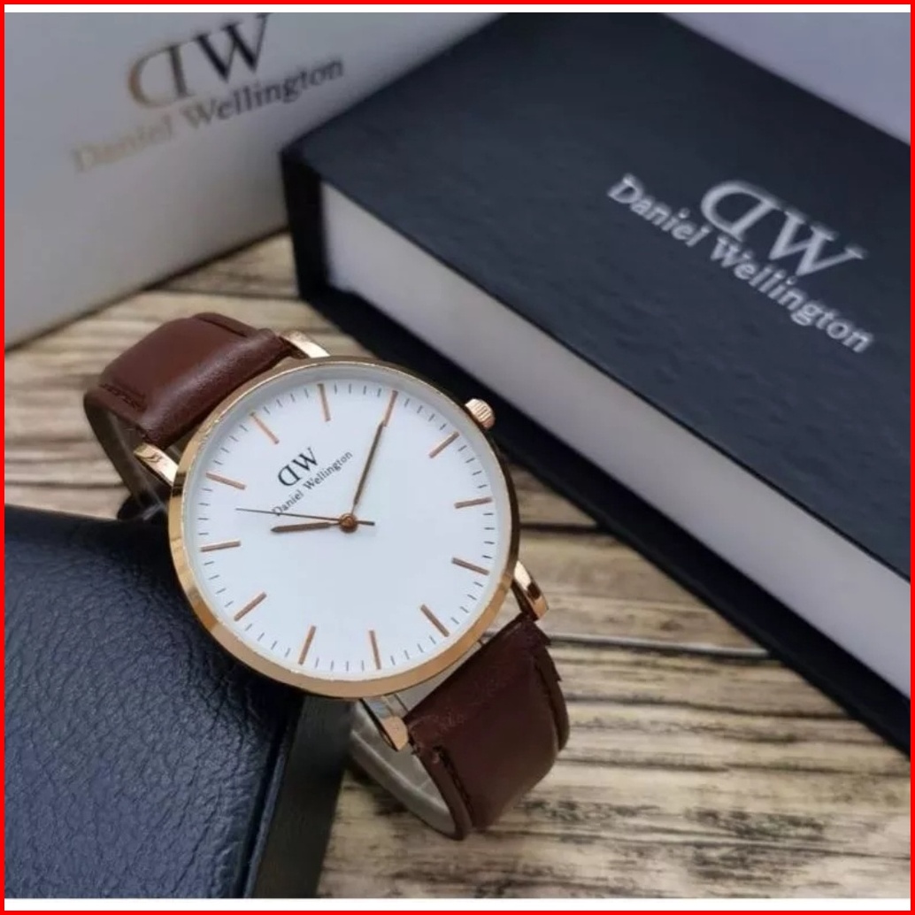 Jam Tangan Pria - Wanita Dw Premium Tali Kulit Analog Model 3 Jarum