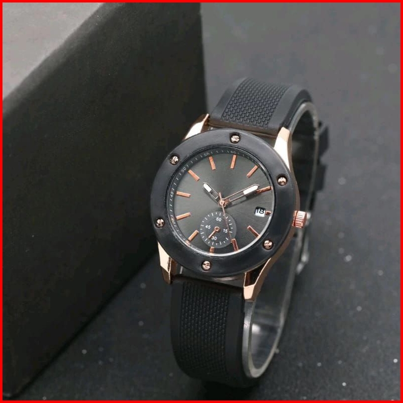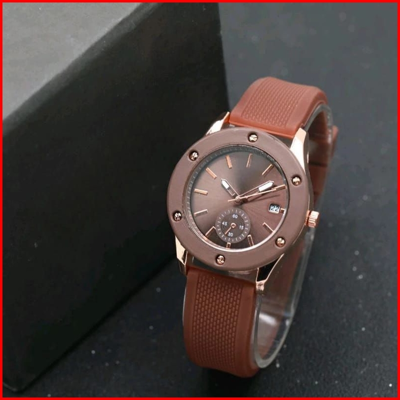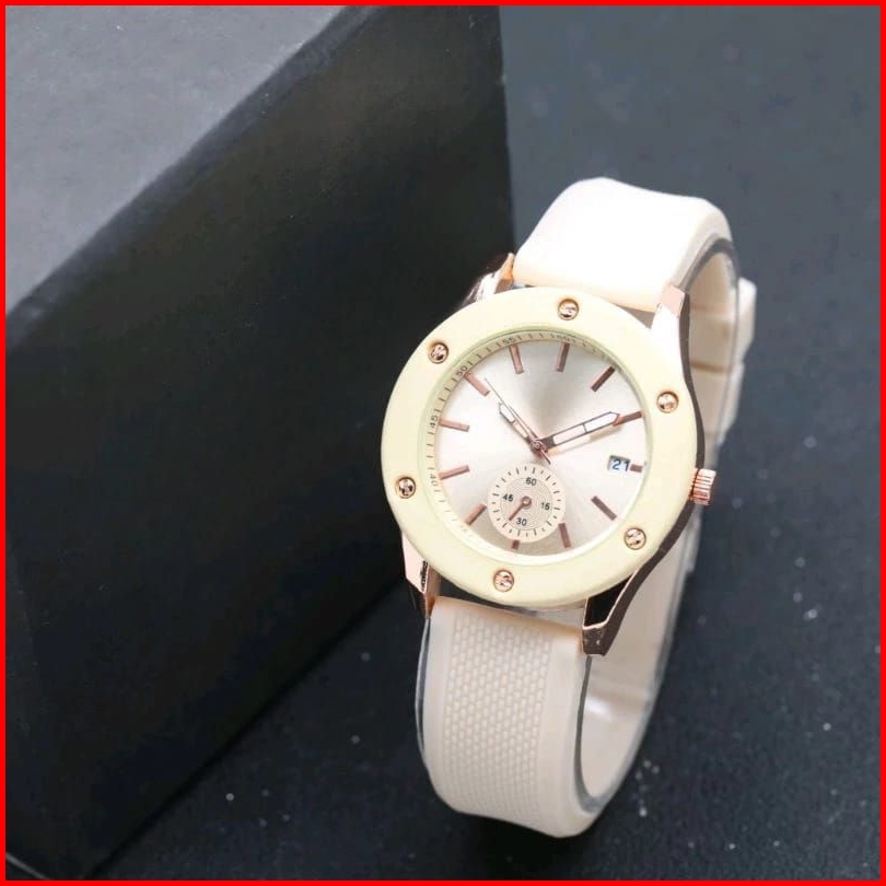 Jam Tangan Wanita Fnl 8973 Rubber Karet Tanggal Aktif Analog Quartz Chrono Off