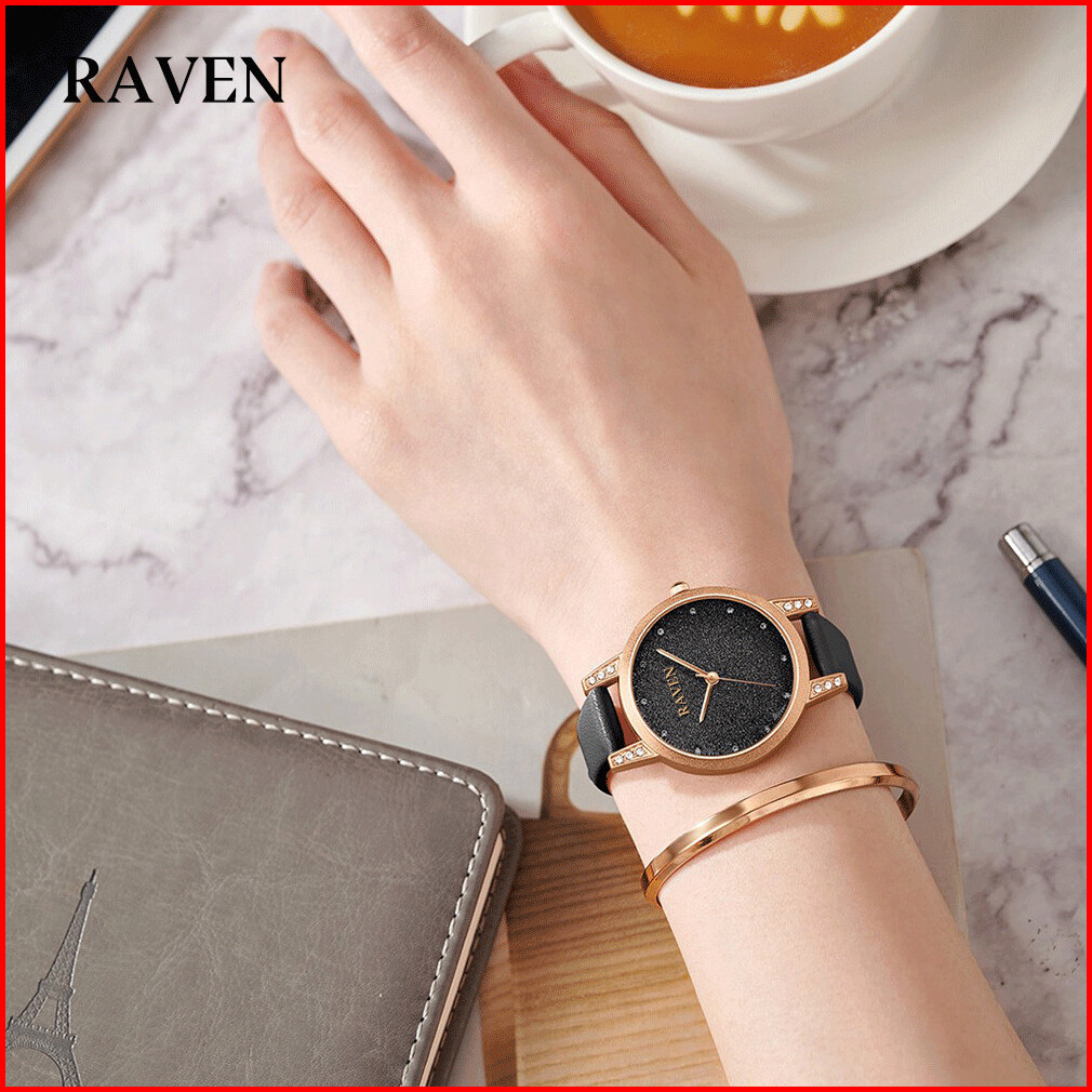 Raven Jam Tangan Wanita Mode Santai Original Anti Air Jam Wanita Tali Kulit Jam Tangan Cewek