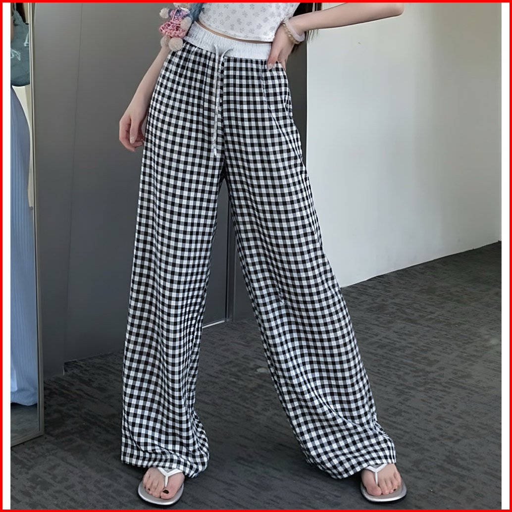 City Pants Celana Panjang Wanita Kekinian Motif Garis Kulot Stripe Loose Fit Korean Style Untuk Kantor Kuliah Hangout Ba