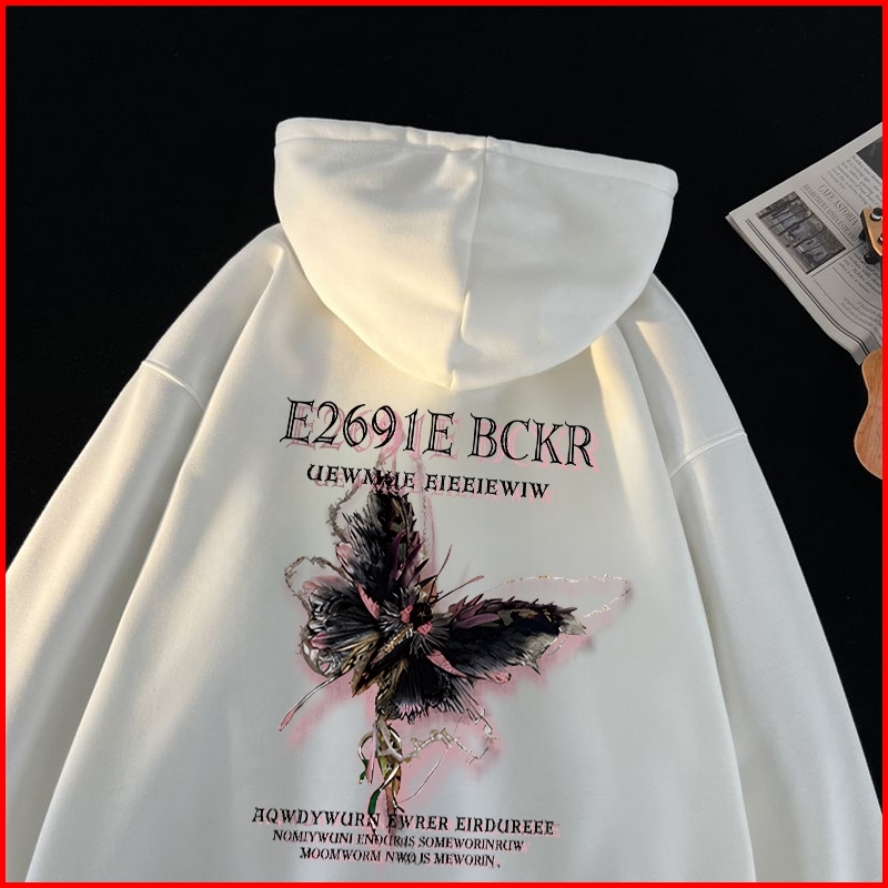 Po Floret Sweater Hoodie Wanita Oversize Premium Baju Lengan Panjang Butterfly Print Atasan Kekinian