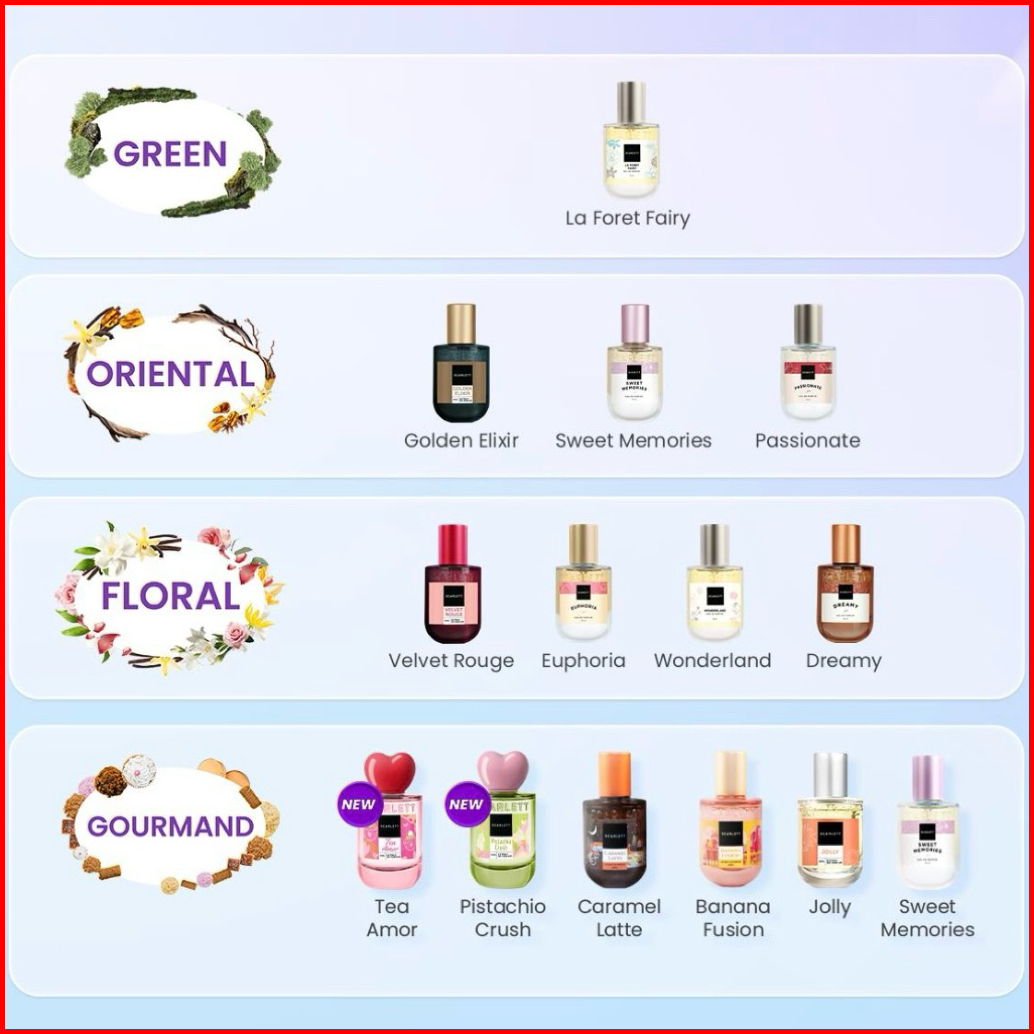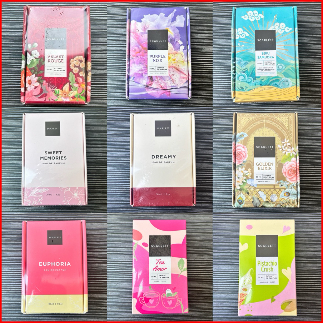 Scarlett Whitening Eau De Parfum 30ml - Sweet Memories Velvet Rouge Purple Kiss Biru Samudra Dreamy Euphoria Banana Fusi
