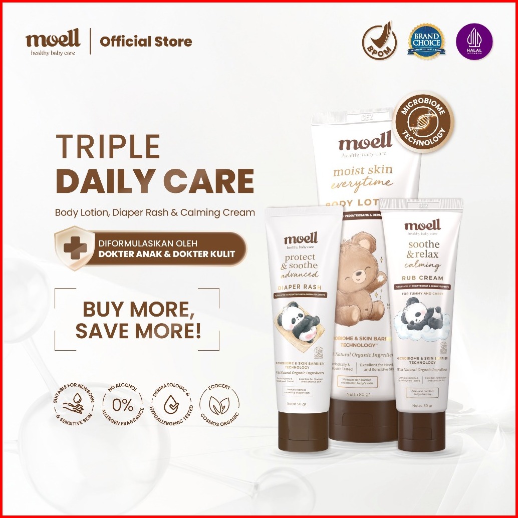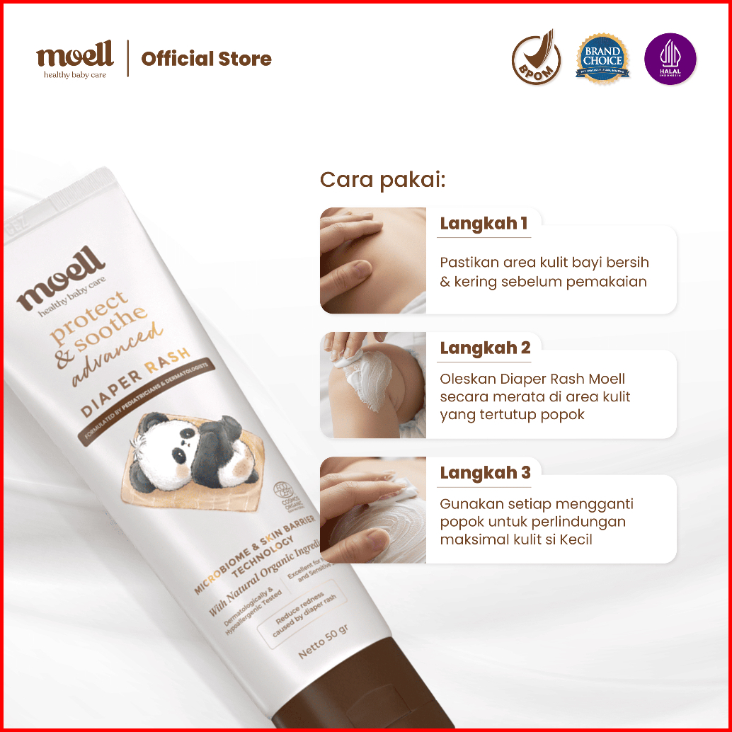 Baru Moell Diaper Rash Advanced 50gr - Krim Popok Redakan Dan Cegah Ruam Popok - Bebas Ruam Nyaman Seharian - Organic Ca