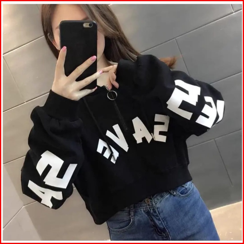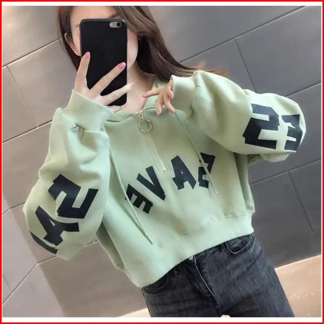 Save Croope Hoodie Sweater Wanita Oversize Sweater Crop Wanita Korean Style Kekinian