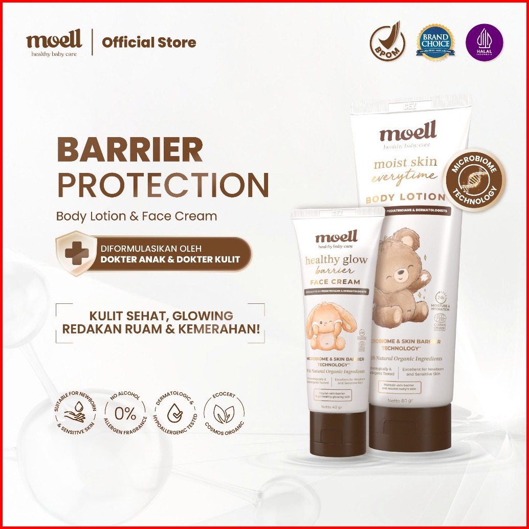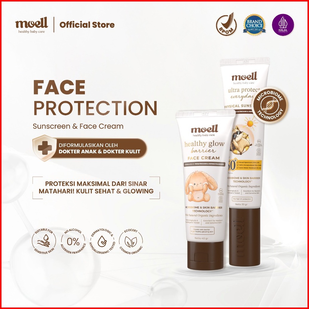 Moell Face Cream 40gr Plant Based Probiotics Panthenol - Pelembap Wajah Bayi - Menenangkan Meredakan Kulit Sensitif Keri