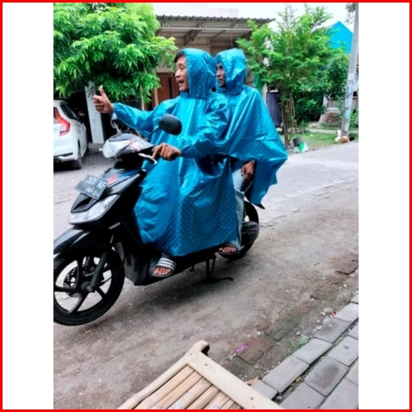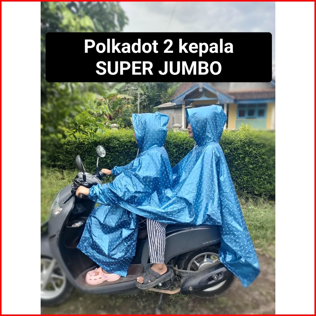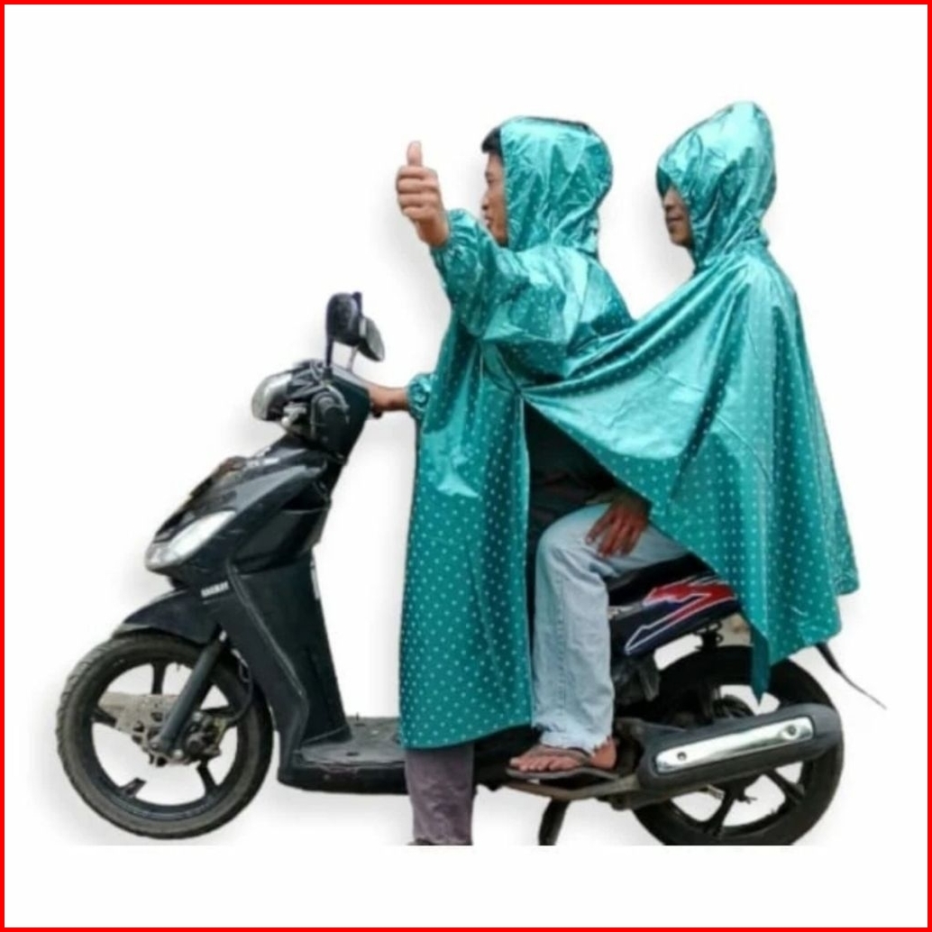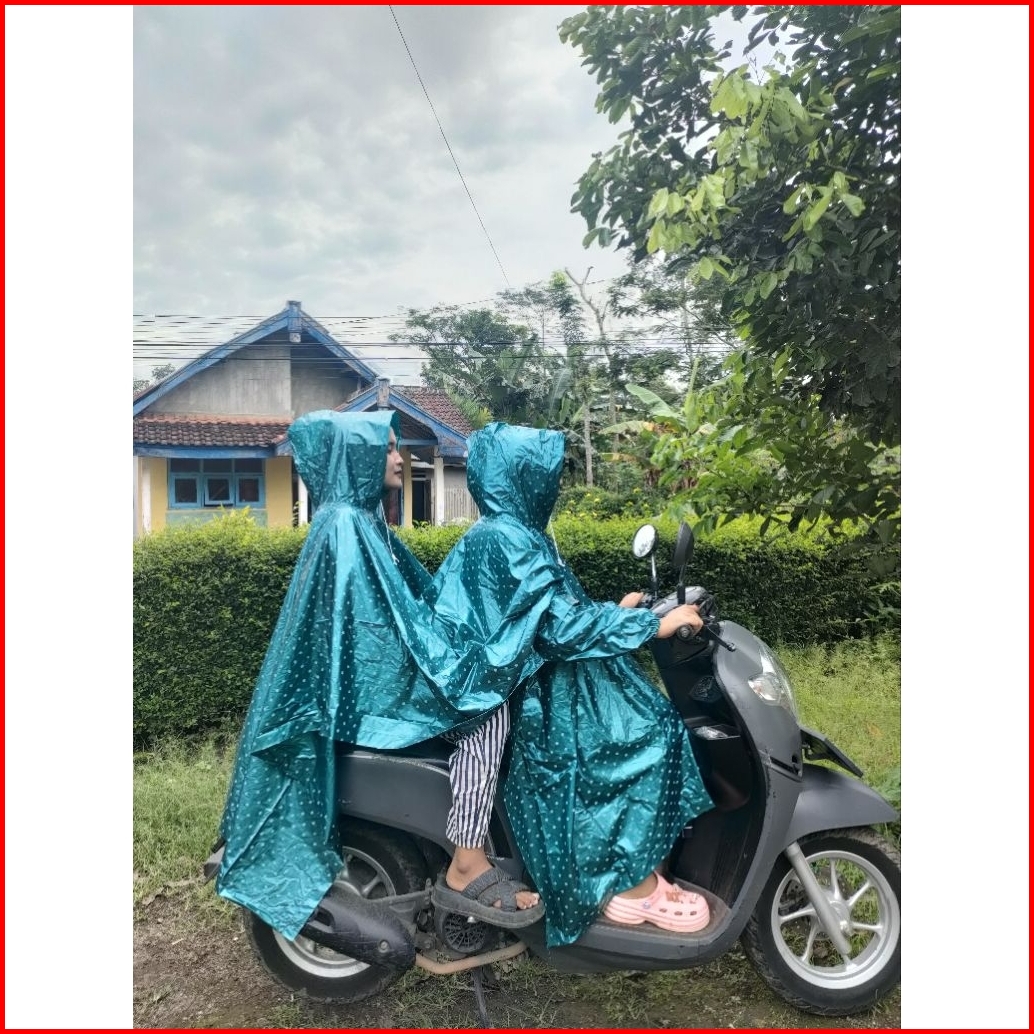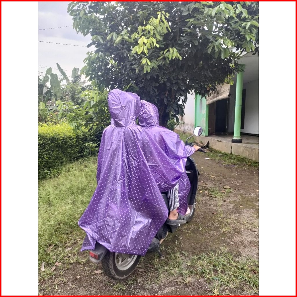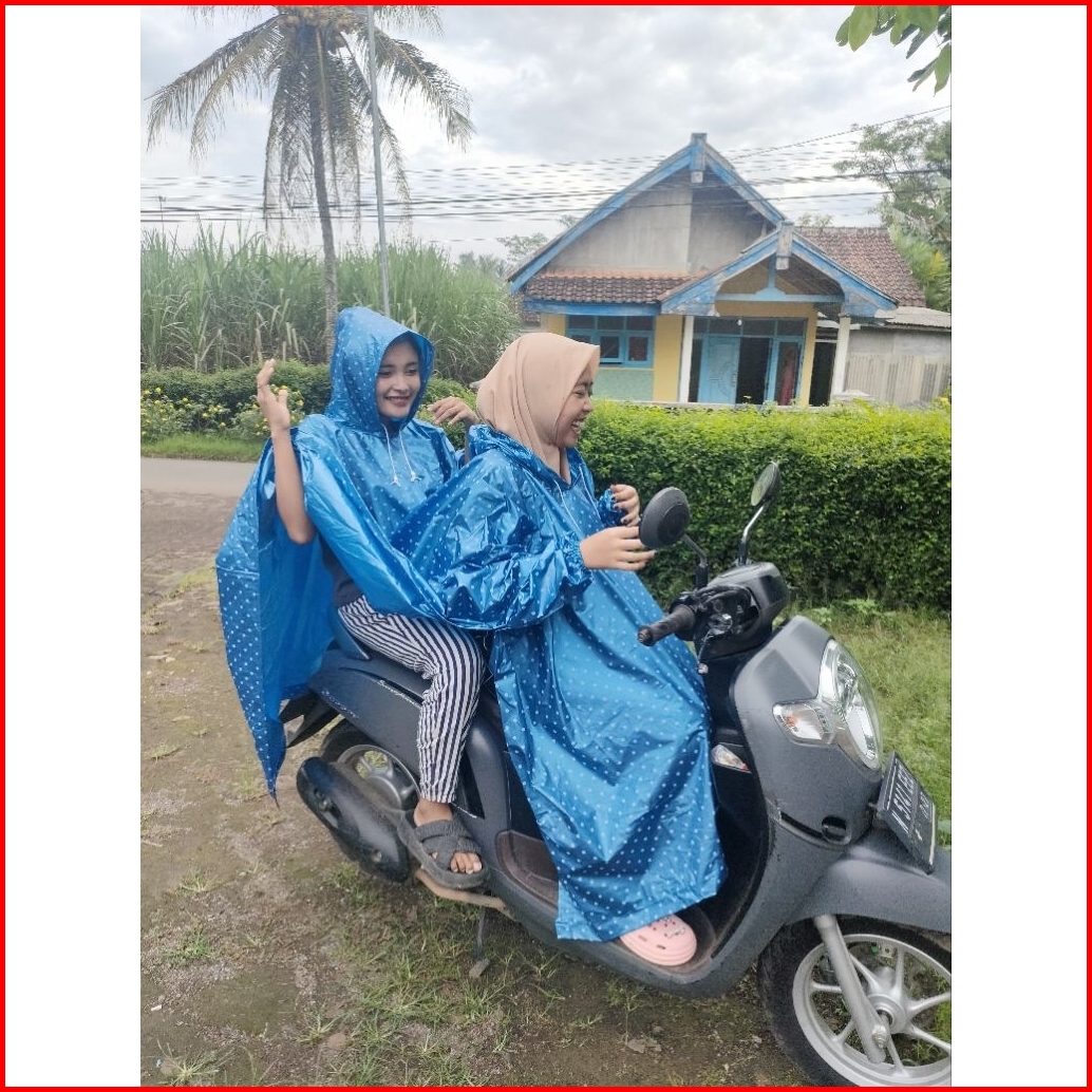 Jas Hujan Ponco Lengan 2in1 Kelelawar Lengan Polkadot Kepala Dua Bahan Pvc Tebal