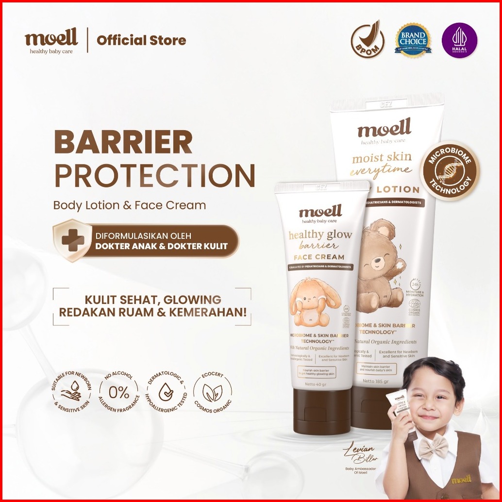 Moell Barrier Protection Body Lotion 185gr Face Cream 40gr - Kulit Sensitif Dan Kering - Skincare Anak Formulasi Dokter