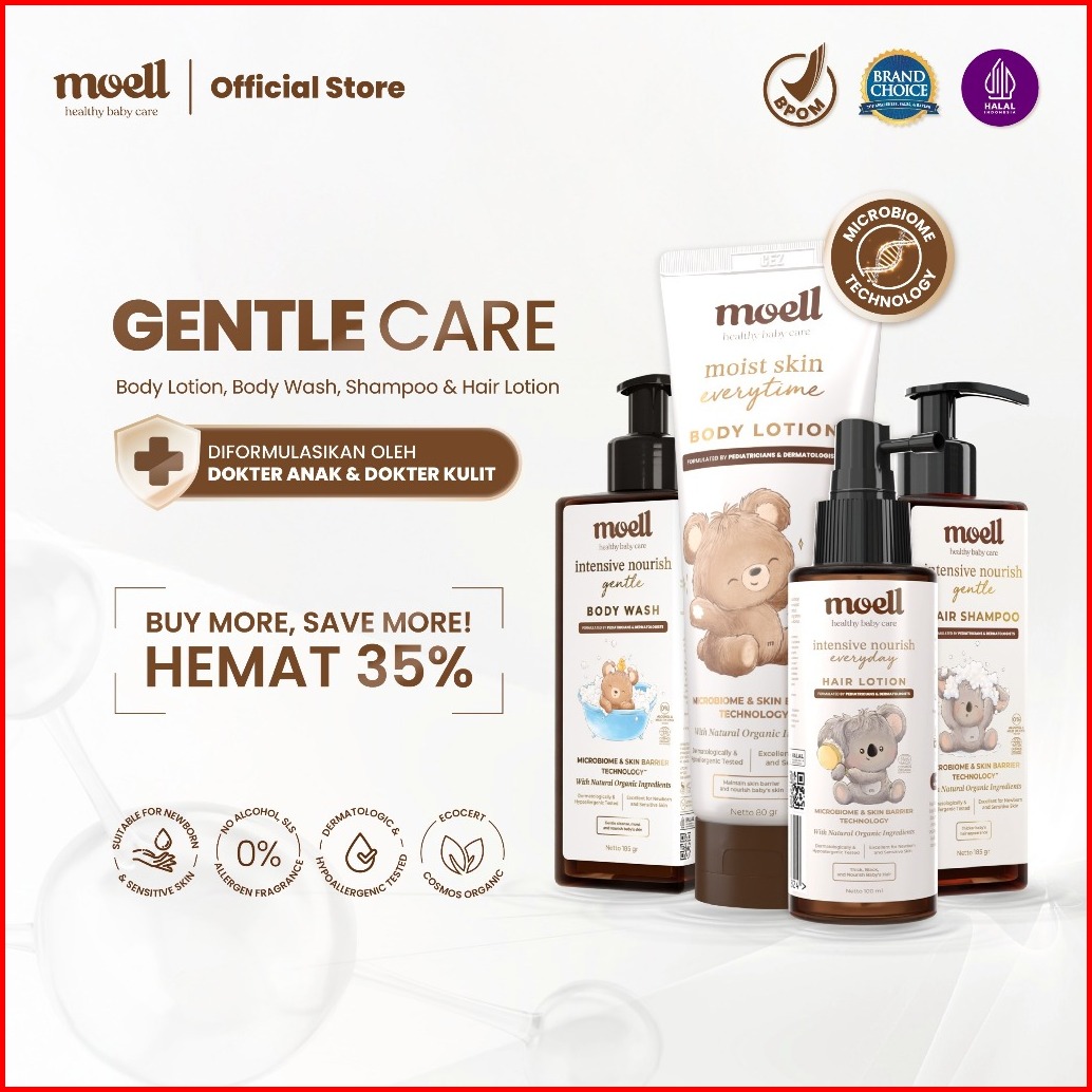 Moell Gentle Care Body Wash 185gr Body Lotion 185gr Shampoo 185gr Hair Lotion 100gr - Paket Perawatan Bayi Dan Anak Form